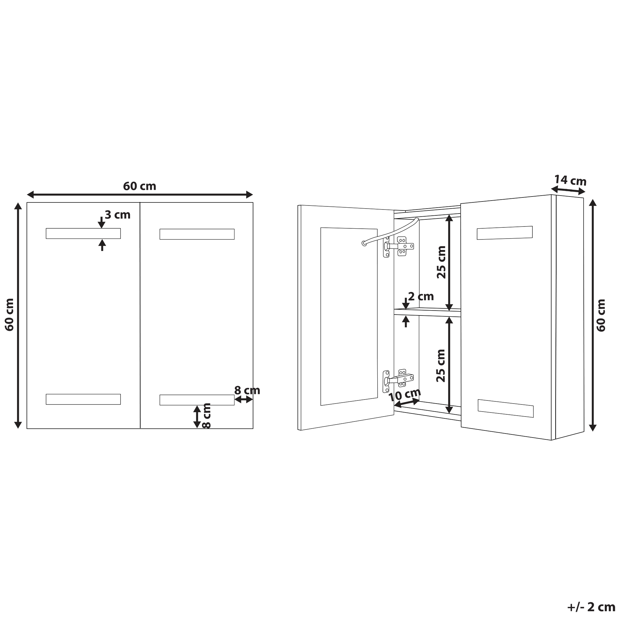 Kylpyhuoneen peilikaappi LED-valo TALAGAPA 60 cm 60 cm Valkoinen