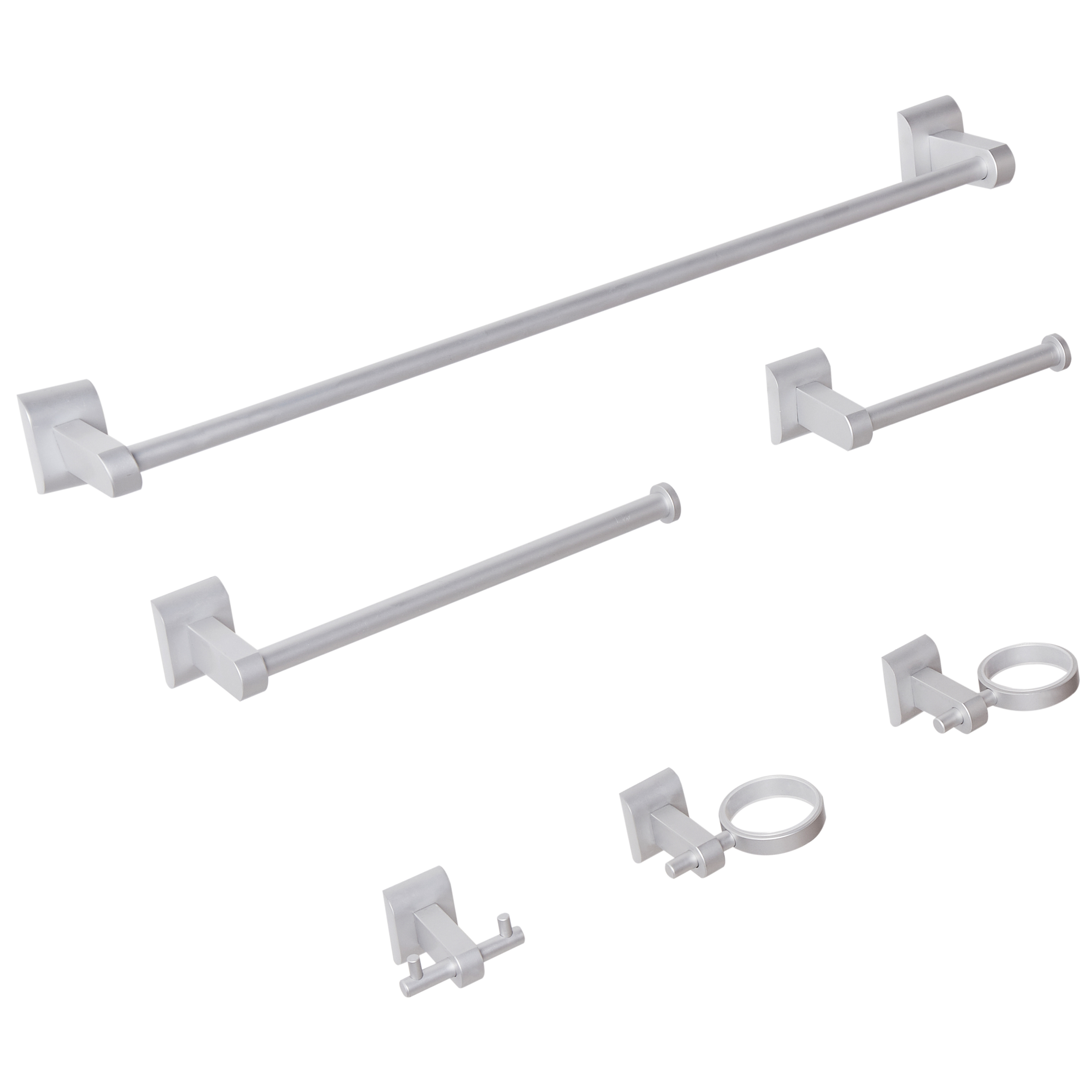 Kylpyhuoneen tarvikesetti 6 osaa TALARA pyyhetangoilla ja -koukuilla Hopea
