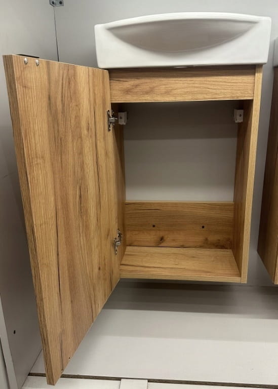Kylpyhuonekaappi, jossa 40 cm leveä pesuallas, viimeistelty tammion täydellinen ratkaisu niin pieniin kuin suuriin kylpyhuoneisiin. Valmistettu korkealaatuisesta levystä, se varmistaa kestävyyden ja vaurioiden kestävyyden, mikä takaa pitkän käyttöiän.