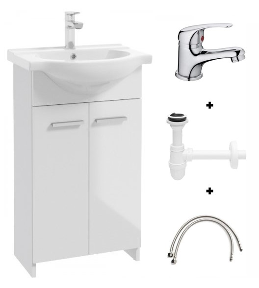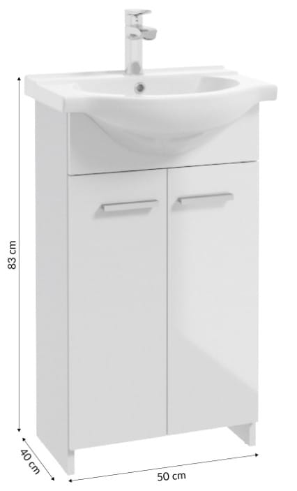 Kylpyhuonesarja sisältää:</h2> <p><strong>️</strong>pesuallas 50</p> <p><strong>️</strong>pesuallaskaappi</p> <p><strong>️</strong>tulppa kumia</p> <p><strong>️</strong>pesualtaan sifoni 50mm</p> <p><strong>️</strong>kompakti yksivipusekoitin (nokan pituus noin 10 cm)</p> <p><strong>️</strong>3/8 tuuman sekoittimen letkut, 34 cm, tiivisteillä</p> <h2> Tärkeimmät ominaisuudet ovat:</h2> <ul> <li><strong>Koko setin käytännön mitat:</strong>Korkeus 85 cm, leveys 50 cm, syvyys 40 cm,</li> <li><strong>Mukava pesuallas</strong>Leveys 50 cm ja syvyys 40 cm,</li> <li><strong>Kompakti kaappi</strong>Leveys 45 cm, korkeus 80 cm, syvyys 26 cm,</li> <li><strong>Valmistettu lastulevystä laminoitu</strong>16 mm valkoinen, lakatut etupinnat,</li> <li>itsekokoonpanoa varten</li> </ul> <h2> Parametrit:</h2> <ul> <li><strong>Sarja:</strong>Marlena</li> <li><strong>Pesualtaan leveys:</strong>50 cm</li> <li><strong>Oven kahvat, kahvat:</strong>Kaksipistekahva</li> <li><strong>Pesualtaan viimeistely:</strong>Keramiikka</li> <li><strong>Lakattu:</strong>Kyllä</li> <li><strong>Sarjan kokonaiskorkeus:
