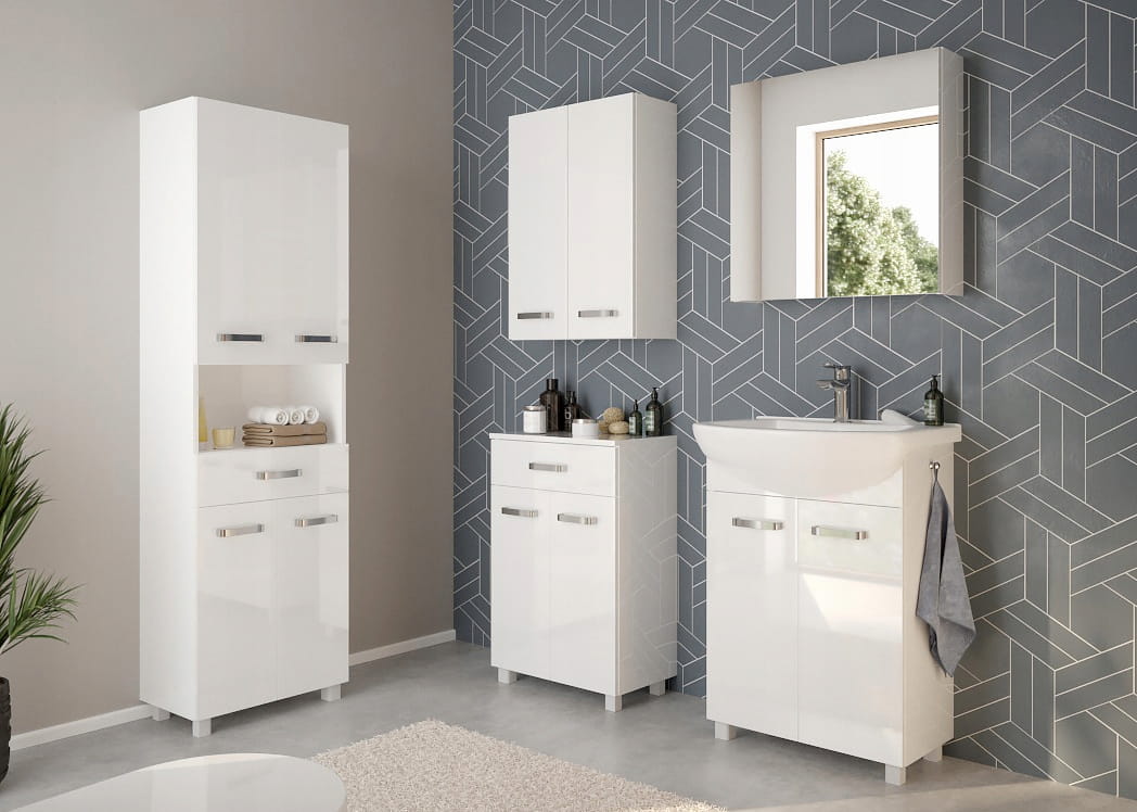 Mila-setti ei ainoastaan laajentaa tilaa visuaalisesti, vaan tarjoaa myös lisää säilytystilaa. Universaalin värinsä ja modernin muotoilunsa ansiostakylpyhuoneen kaappisopii täydellisesti useimpiin sisätiloihin harmonisoituen laattojen ja kalusteiden kanssa.
