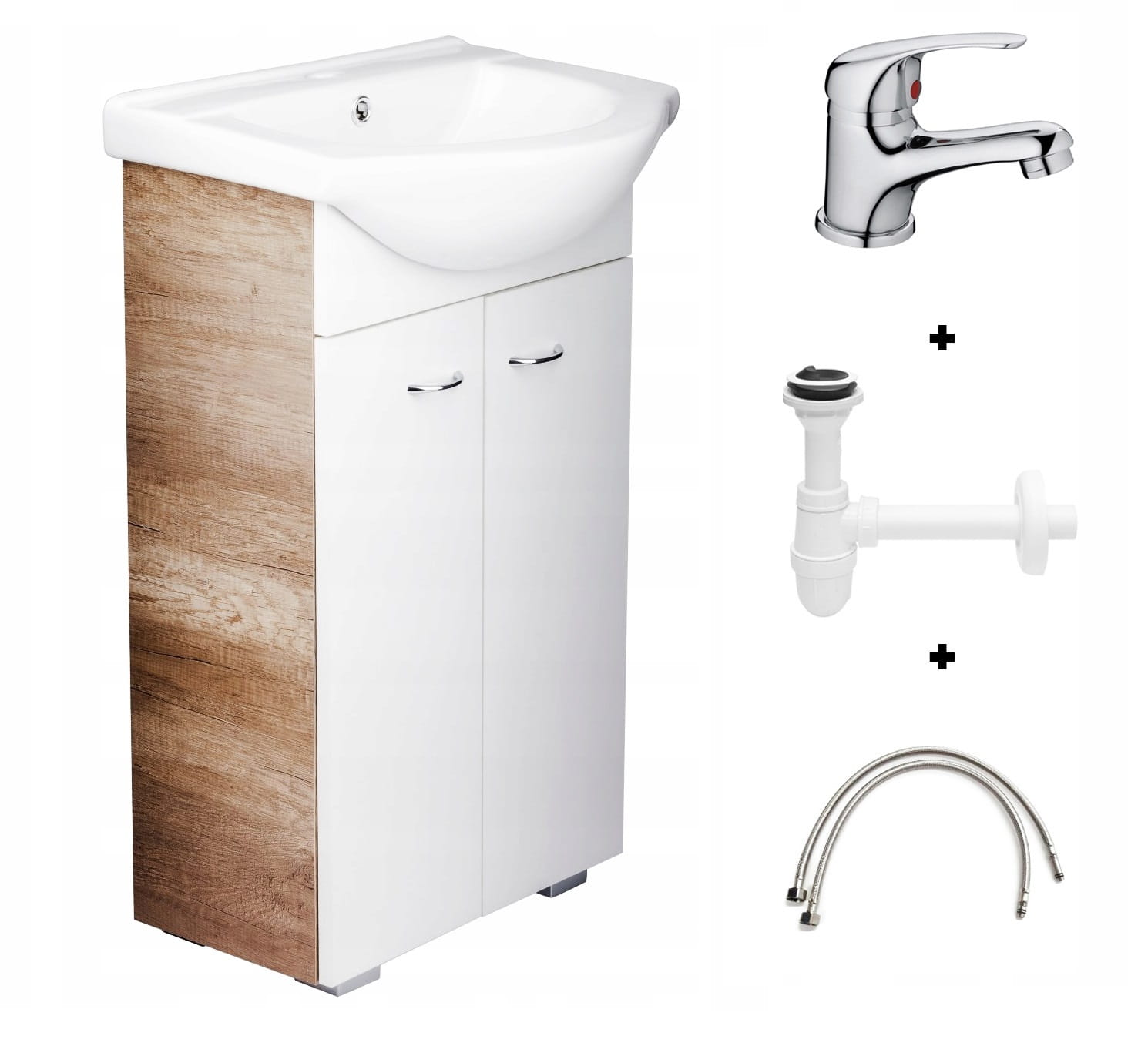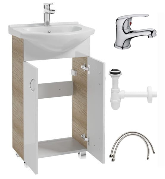 Vapaasti seisova kylpyhuonekaappi 50 mm pesualtaalla, sifonilla ja TIM-hanalla
