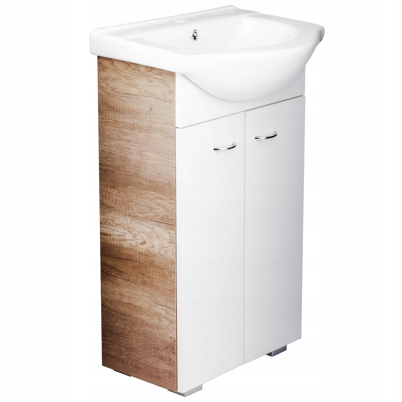 Parametrit:</h2> <ul> <li><strong>Sovellus:</strong>Kylpyhuoneen kalusteet</li> <li><strong>Hallitseva väri:</strong>Valkoinen, monumentaalinen tammi</li> <li><strong>Kaapin kokonaiskorkeus:</strong>80 cm</li> <li><strong>Kokonaisleveys:</strong>50 cm</li> <li><strong>Oven kahvat:</strong>Kaksipistekahva</li> <li><strong>Asennustapa:</strong>Itsekokoonpanoa varten</li> <li><strong>Pesualtaan viimeistely:</strong>Keramiikka</li> <li><strong>Rungon viimeistely:</strong>16 mm tammilastulevy monumentaalinen</li> <li><strong>Etu viimeistely:</strong>16 mm valkoinen lastulevy</li> <li><strong>Paino:</strong>19,5 kg</li> <li><strong>Etuosan väri:</strong>Valkoinen</li> <li><strong>Rungon väri:</strong>Monumentaalinen tammi</li> <li><strong>Kaapin korkeus pesualtaalla:</strong>86 cm</li> <li><strong>Kaapin leveys:</strong>45 cm</li> <li><strong>Kaapin syvyys:</strong>26 cm</li> <li><strong>Pesualtaan leveys:</strong>50 cm</li> <li><strong>Pesualtaan syvyys:</strong>40 cm