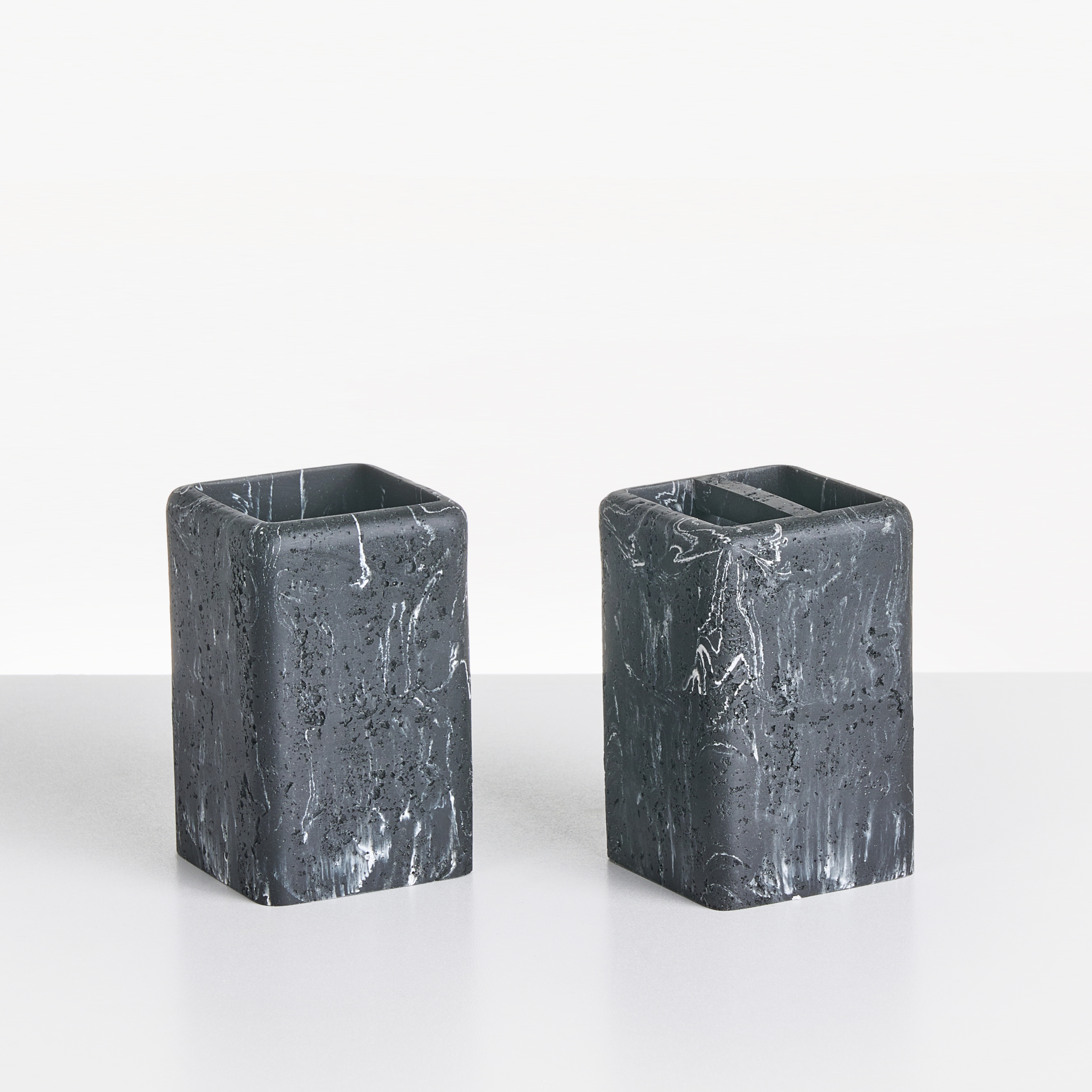 Marmorikuvioitu tarvikesetti kylpyhuoneeseen. Tämä viisiosainen kylpyhuonesetti tekee mistä tahansa kylpyhuoneesta viimeistellyn ja elegantin. Monipuoliseen settiin kuuluu hammasharjapidike, vesilasi, vessaharja, saippua-annostelija ja saippuapidike, jotka pitävät kaiken siististi järjestyksessä ja saavat tilan tuntumaan yhtenäiseltä. Tarvikkeet on valmistettu polyhartsista, jonka huokoinen, marmorikuvioitu pinta antaa käsittelemättömän ilmeen ja tuo tilaan ripauksen hillittyä, kylpylämaista ylellisyyttä.