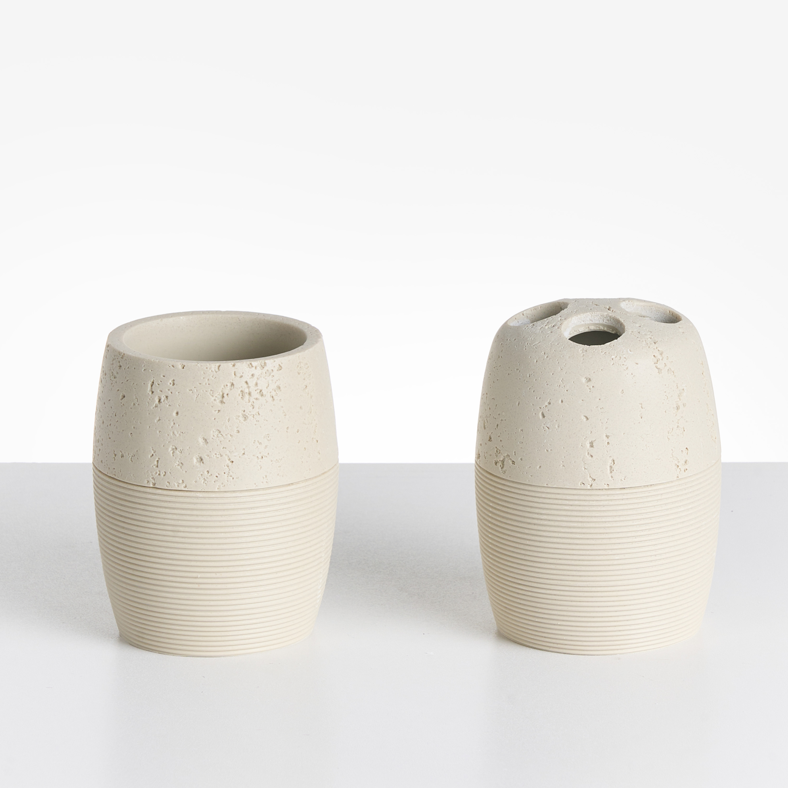 Ominaisuudet: Pitää kylpyhuoneen siistinä ja järjestyksessä, Vaivaton nestesaippuan annostelu sujuvan pumppumekanismin ansiosta, Vessaharja tukevilla harjaksilla perusteellista puhdistusta varten, Lasi huuhteluun tai jokapäiväisten tarvikkeiden säilyttämiseen, Ainutlaatuinen käsintehty kappale, Erityisen helppohoitoinen