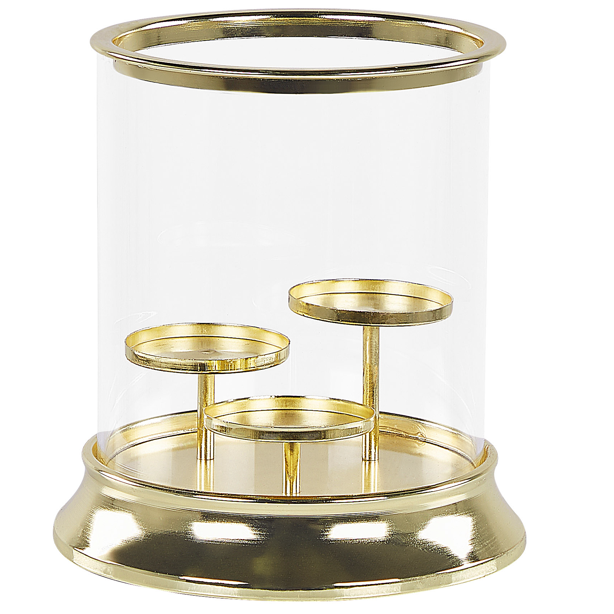 Glamour-tyylinen pyöreä kynttilälyhty. Tämä lasinen kynttilälyhty kolmelle kynttilälle on ihana lisä sisustukseen kuin sisustukseen. Metallista ja lasista valmistettu helppohoitoinen lyhty sopii esimerkiksi pöydälle luomaan tunnelmaa.