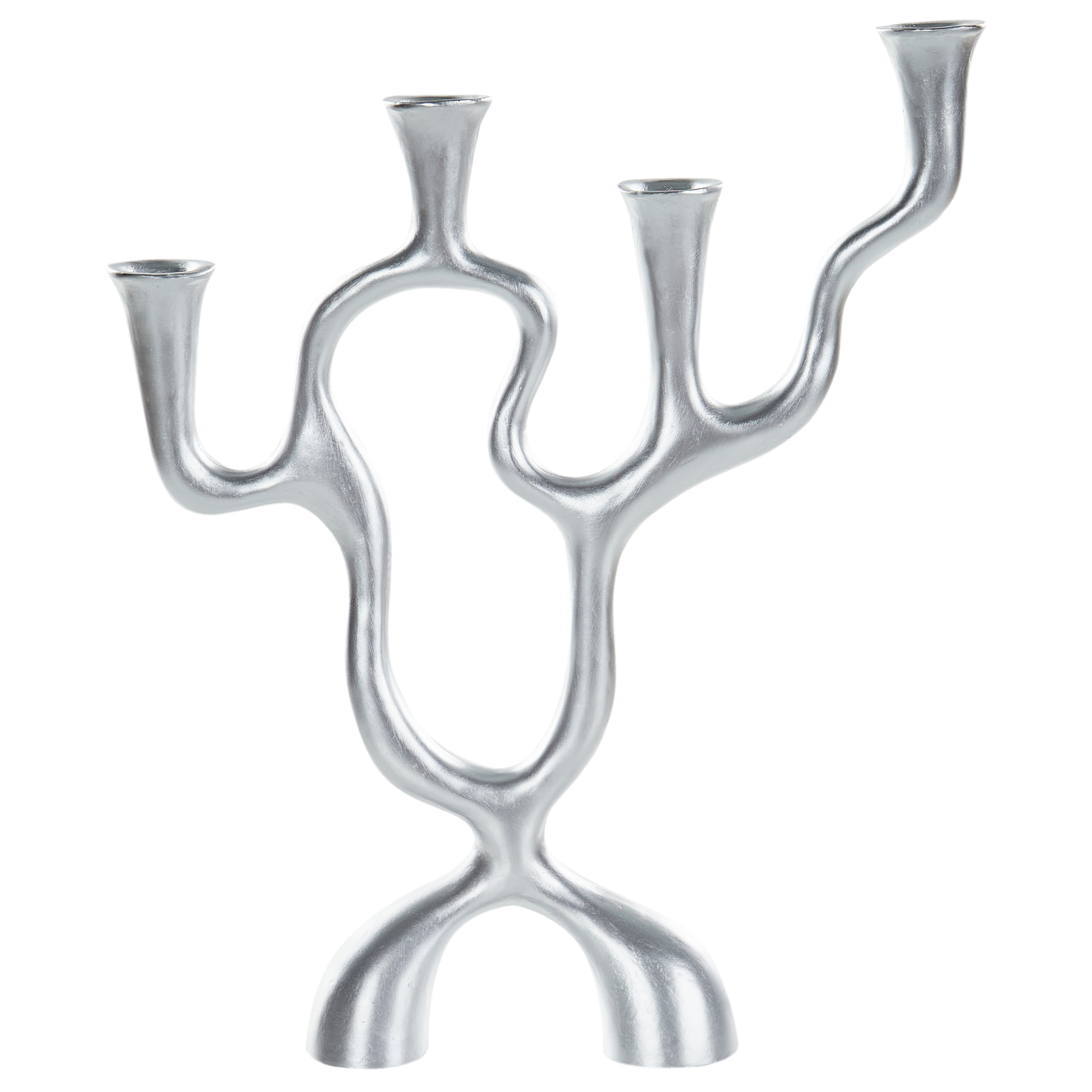Koristeellinen käsintehty kynttelikkö. Kohota kotisi sisustusta tällä elegantilla nelihaaraisella kynttilänjalalla, joka toimii erinomaisesti koristeellisena aksenttina. Kestävästä raudasta käsin valmistetussa kynttelikössä on kaunis, kiiltävän hopeanväri, joka lisää ripauksen viehätystä ja ajatonta eleganssia joka tilaan. Se luo näyttävän keskipisteen mille tahansa pöydälle, takanreunukselle tai senkille, käytettiinpä sitä sitten jokapäiväisenä tunnelmanluojana tai erityistilaisuuksissa.