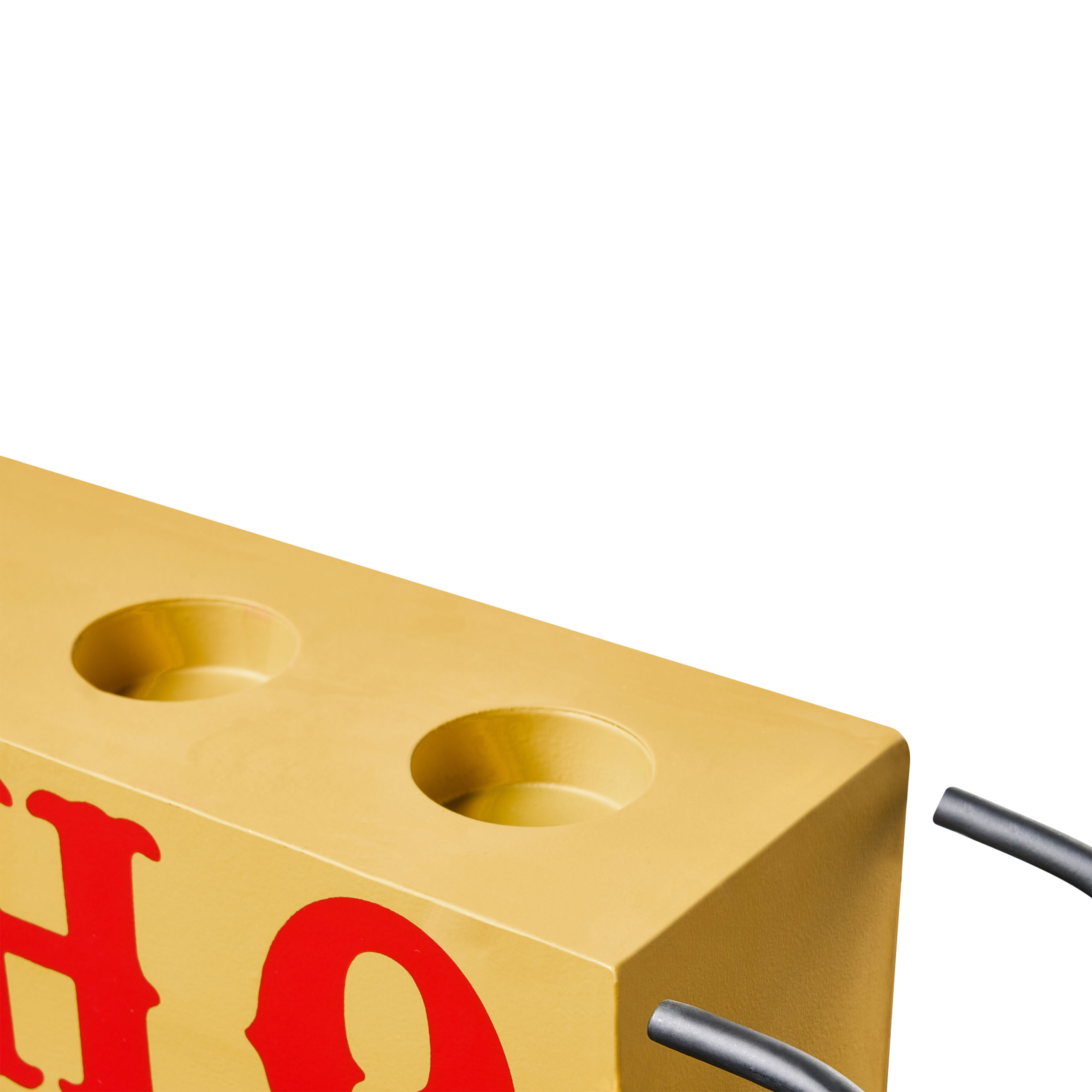 Reenmuotoinen kynttelikkö jouluisella tekstillä. Tuo kotiin sesongin tunnelmaa tällä ainutlaatuisella reenmuotoisella kynttilänjalalla, joka on valmistettu raudasta. Rohkeaa keltaista väriä täydentää punaisella kirjoitettu jouluinen teksti, joka antaa kynttilänjalalle leikkisän mutta näyttävän ilmeen. Se on sekä tukeva että kestävä ja sopii erinomaisesti esille pöydälle, takanreunalle tai ikkunalaudalle joulun aikaan.