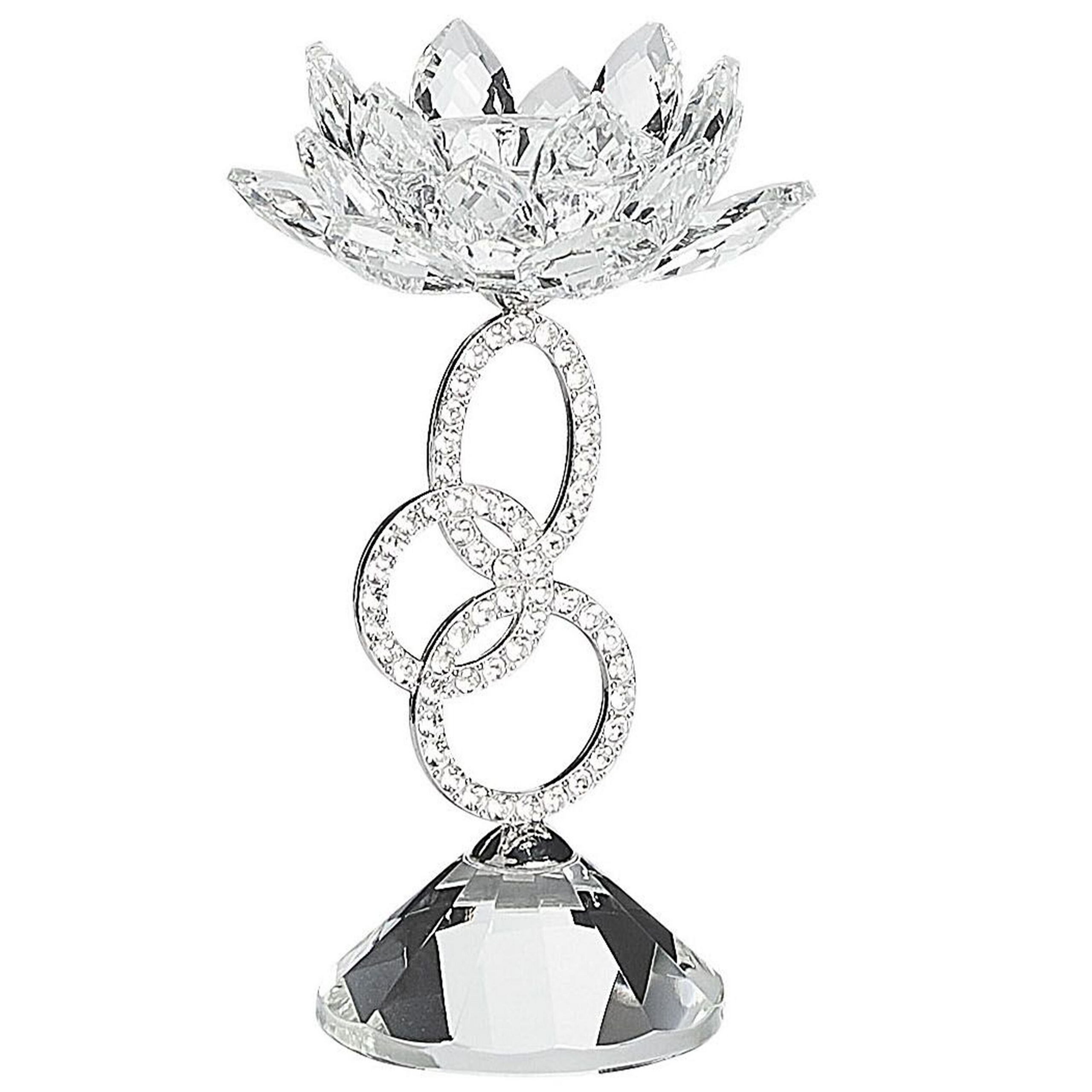 Elegantti kynttilänjalka metallivarrella. Korista sisustustasi tällä hurmaavalla kukkasista inspiraationsa saaneella kynttilänjalalla. Timanttia muistuttava jalka ja koristekivet tekevät kynttilänjalasta elegantin ja ylellisen näköisen. Tämä kynttilänjalka on erinomainen lisä moderniin tai glamour-tyyliseen sisustukseen, mutta se sopii loistavasti myös koristeeksi häihin tai muihin juhliin.