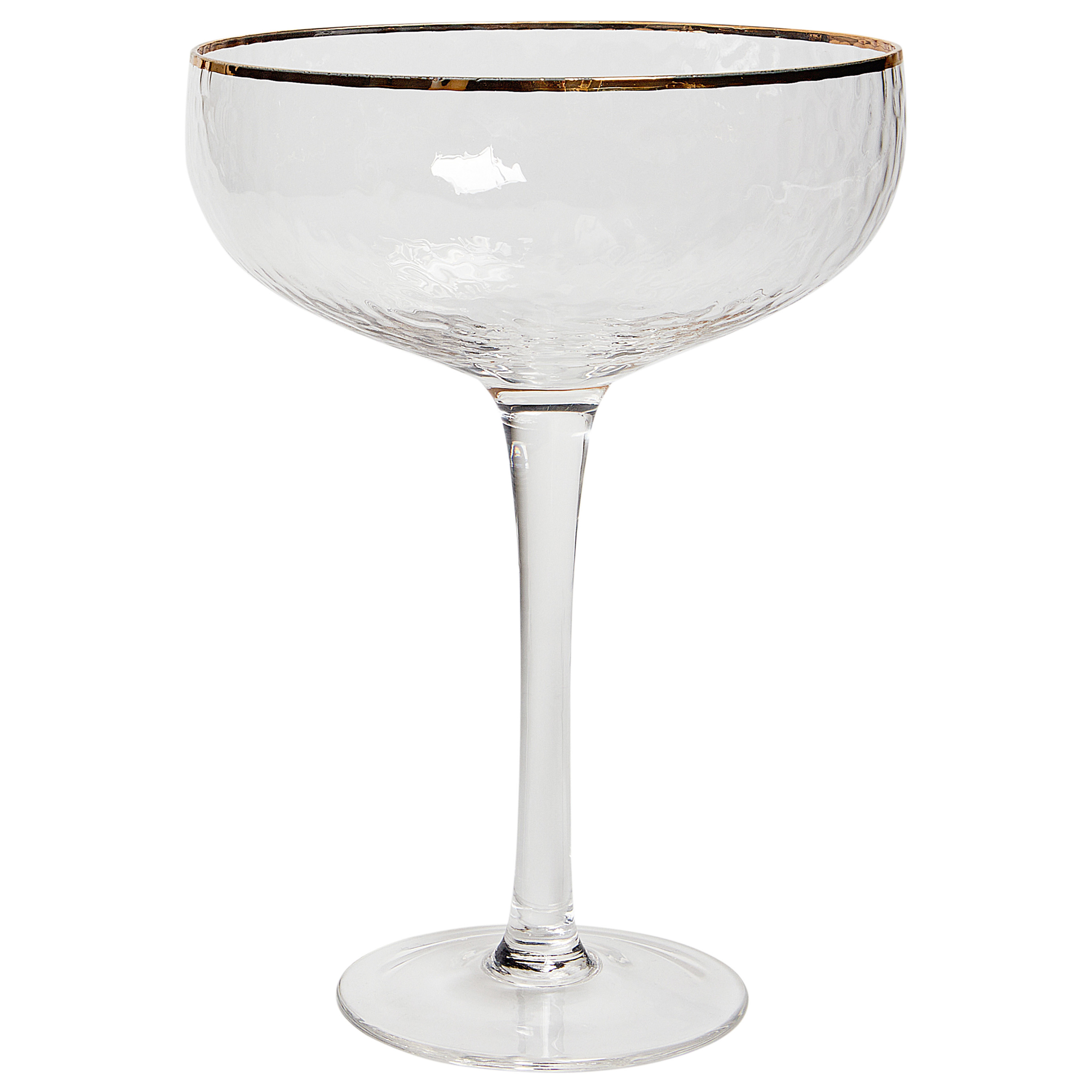 Käsinpuhalletut kultareunaiset laakeat samppanjalasit. Tämä elegantti, käsin puhallettujen laakeiden samppanjalasien setti sopii niin arkeen kuin juhlaankin, tehden jokaisesta tilaisuudesta erityisen. Niissä on pitkä jalka, tyylikäs moukaroitu tekstuuri sekä hienostunut kultainen reunus, jotka antavat laseille vastustamattoman vintage-viehätyksen. Samppanjalasit sopivat täydellisesti kuohuvien tarjoiluun, antaen kupliville juomille todella näyttävän ilmeen.