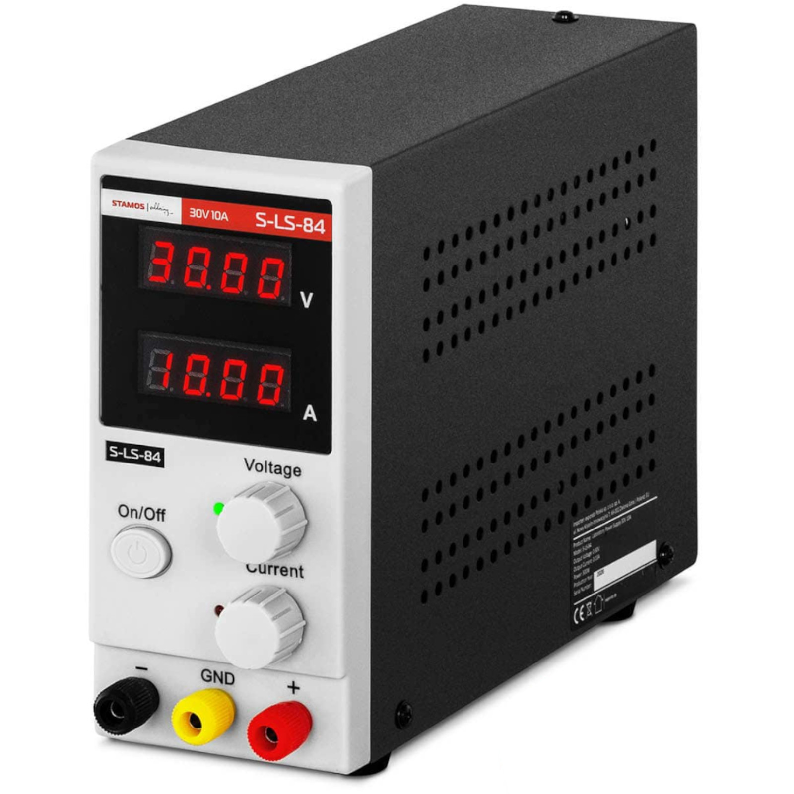 - Säätöalue: 0–30 V ja 0–10 A