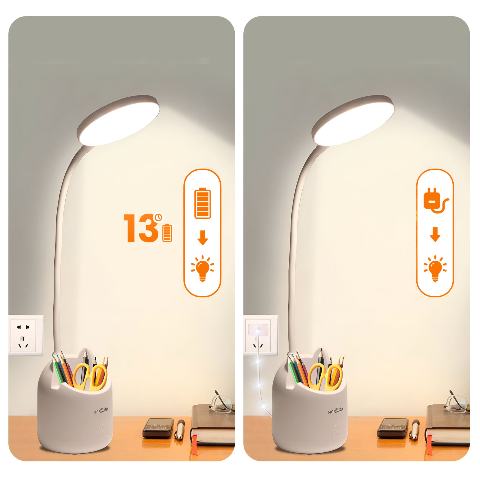 Langaton LED-pöytävalaisin kynäpidikkeellä ja puhelintelineellä
