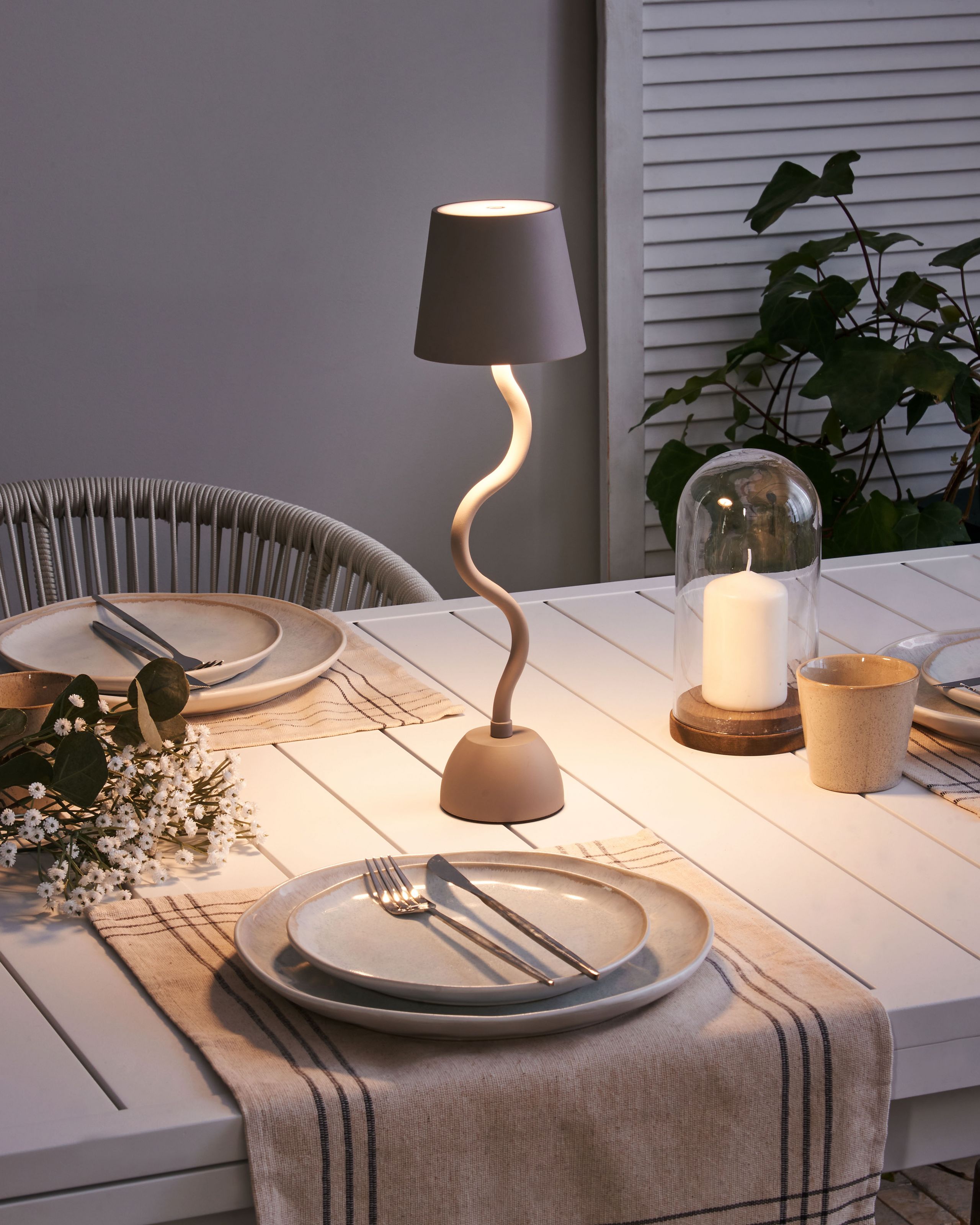 Moderni geometrinen langaton pöytävalaisin. Lisää leikkisää tunnelmaa pöydälle tällä ainutlaatuisella geometrisella pöytävalaisimella, joka voidaan ladata mukana tulevalla USB-C-pistokkeella ja jossa on asteittainen himmennystoiminto. Moderni, aaltoileva jalka tuo valaisimeen hauskuutta, kun taas LED-valo tarjoaa juuri oikean määrän valoa intiimeille illallisille tai kodikkaille illoille. Valaisin on tyylikäs lisä mihin tahansa tilaan, yhdistäen vaivattomasti tyylin ja toimivuuden.