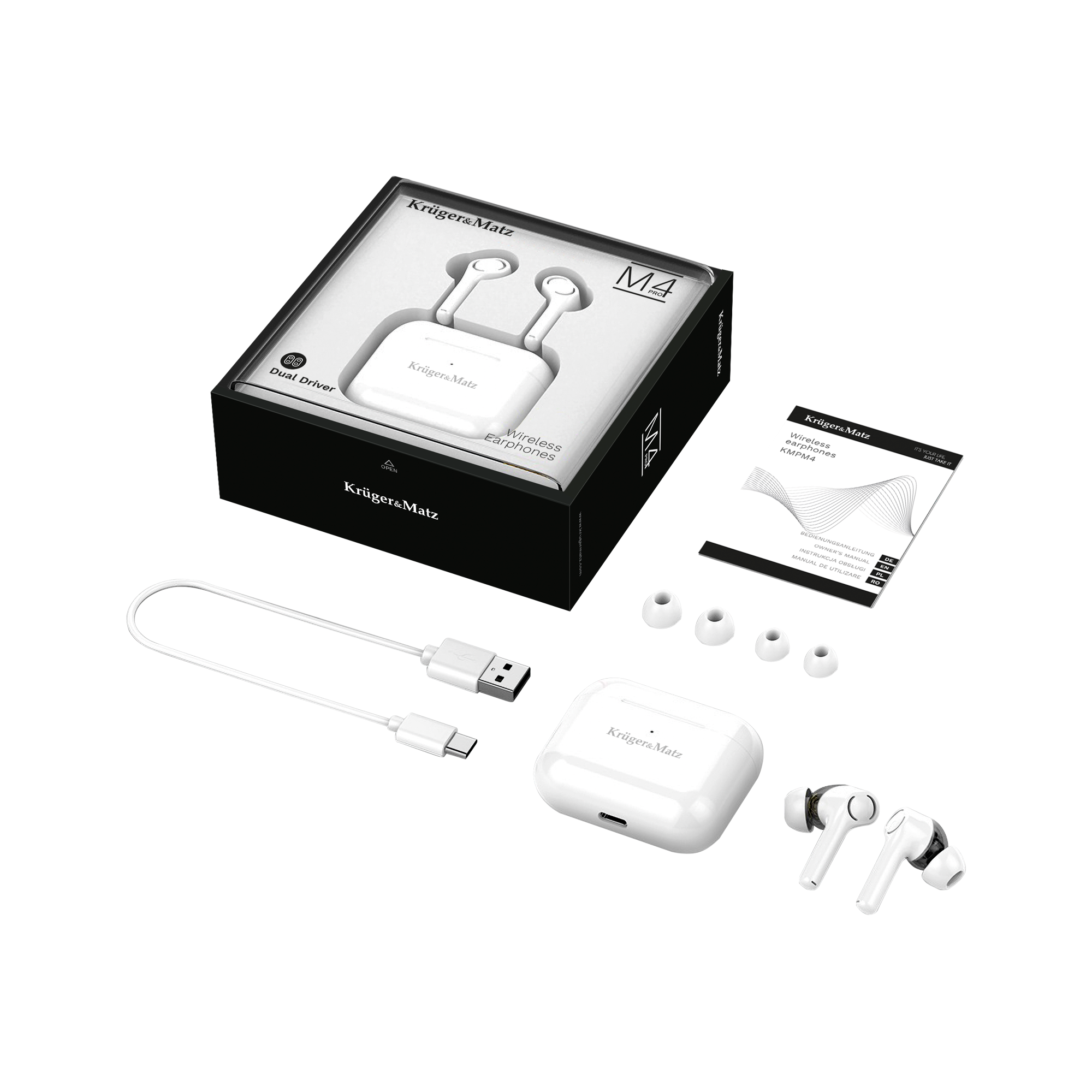 Langattomat Bluetooth-nappikuulokkeet Kruger&Matz M4 PRO -kotelossa