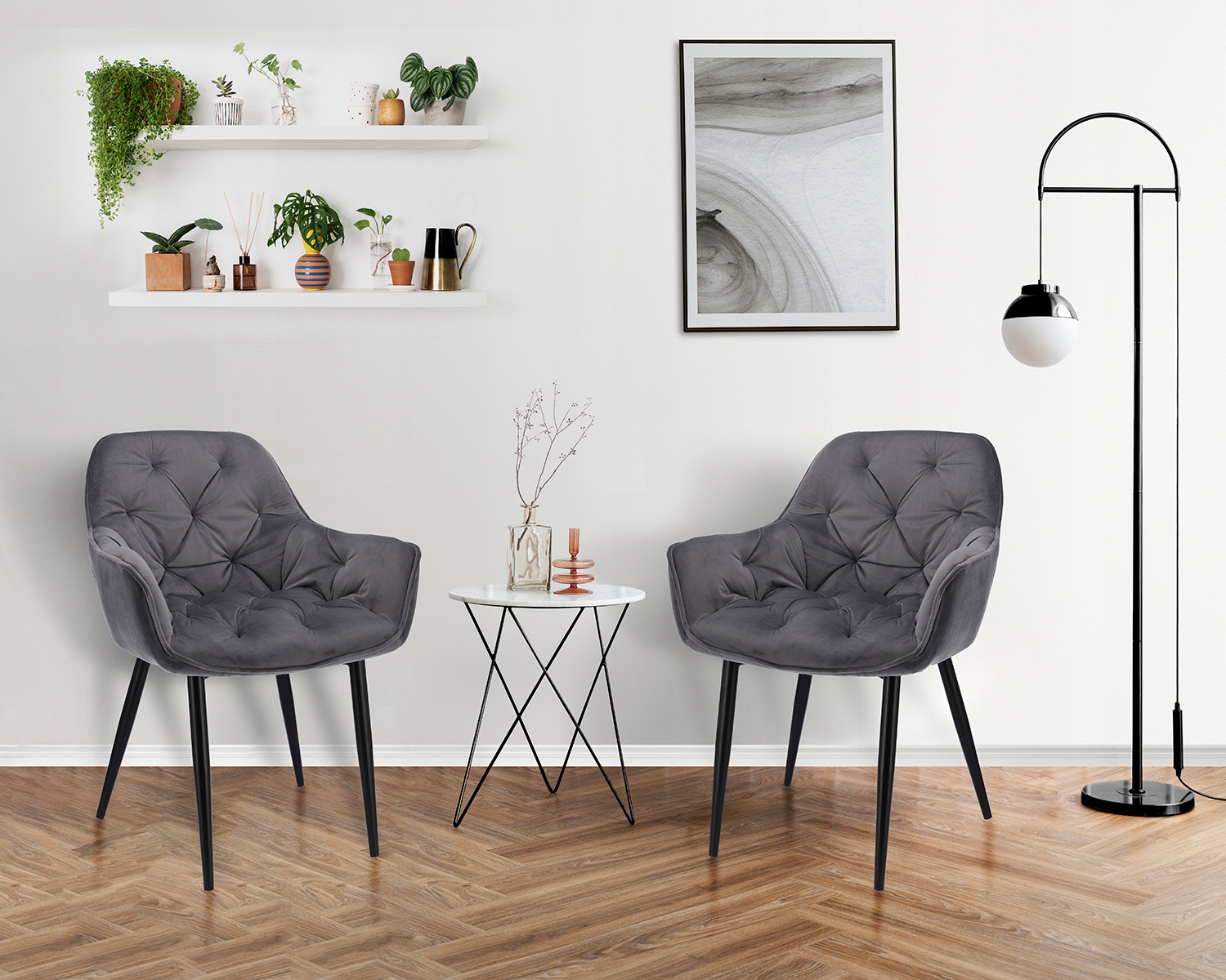 Nojatuoli LARGO on klassismin perikuva. Tukeva, samettinen tuoli on varustettu pehmeällä istuimella ja korkealla selkänojalla, jossa on koristeellinen tikkaus. Hoikat mustat jalat antavat visuaalista keveyttä ja takaavat täydellisen vakauden. Selkänojan ja käsinojien korkeus sekä pehmeys tekevät tuolista uskomattoman mukavan.