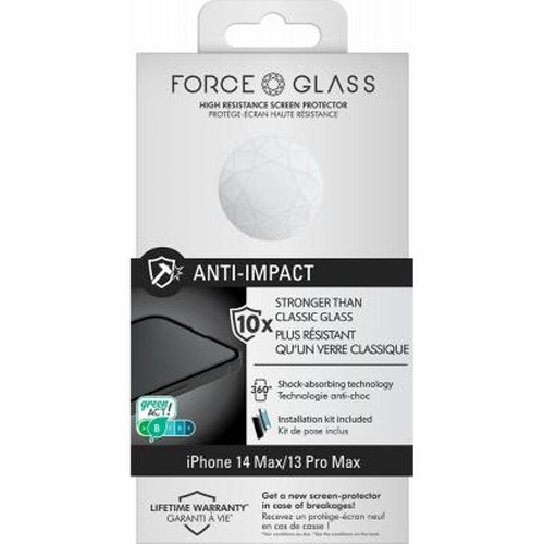 Tämä karkaistua lasia oleva näytönsuoja on suunniteltu suojaamaan iPhone 13 Pro Max/14 Plus -puhelimen näyttöä naarmuilta ja iskuilta. Se on 10 kertaa kestävämpi TechShock 360° -teknologian ansiosta, joka neutralisoi sivutörmäykset. Näytönsuojan reunat on vahvistettu rajoittamaan näyttöön kohdistuvia suoria iskuja. Lasi on miellyttävän tuntuista ja täysin läpinäkyvää.