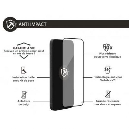 Tämä karkaistua lasia oleva näytönsuoja on suunniteltu suojaamaan iPhone 14 Pro Max -puhelimen näyttöä naarmuilta ja iskuilta. Se on 10 kertaa kestävämpi TechShock 360° -teknologian ansiosta, joka neutralisoi sivutörmäykset. Näytönsuojan reunat on vahvistettu rajoittamaan näyttöön kohdistuvia suoria iskuja. Lasi on miellyttävän tuntuista ja täysin läpinäkyvää.