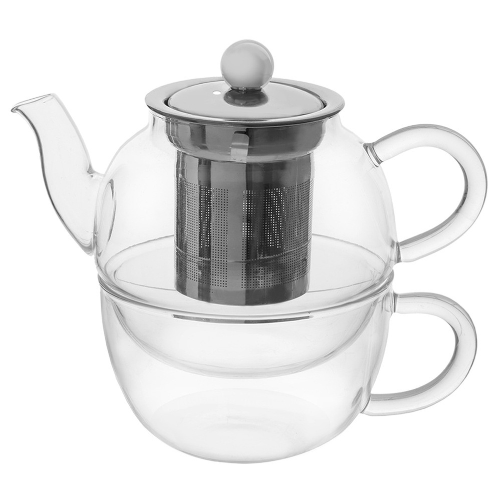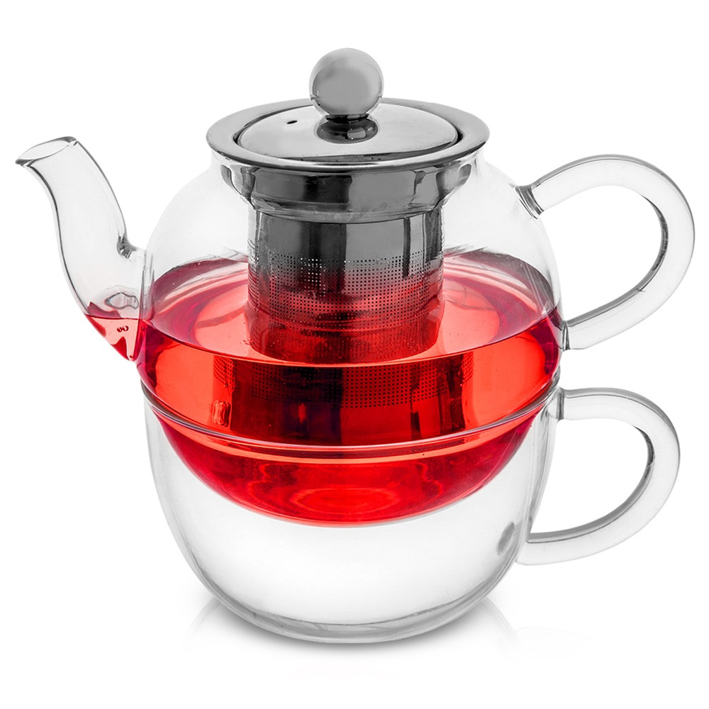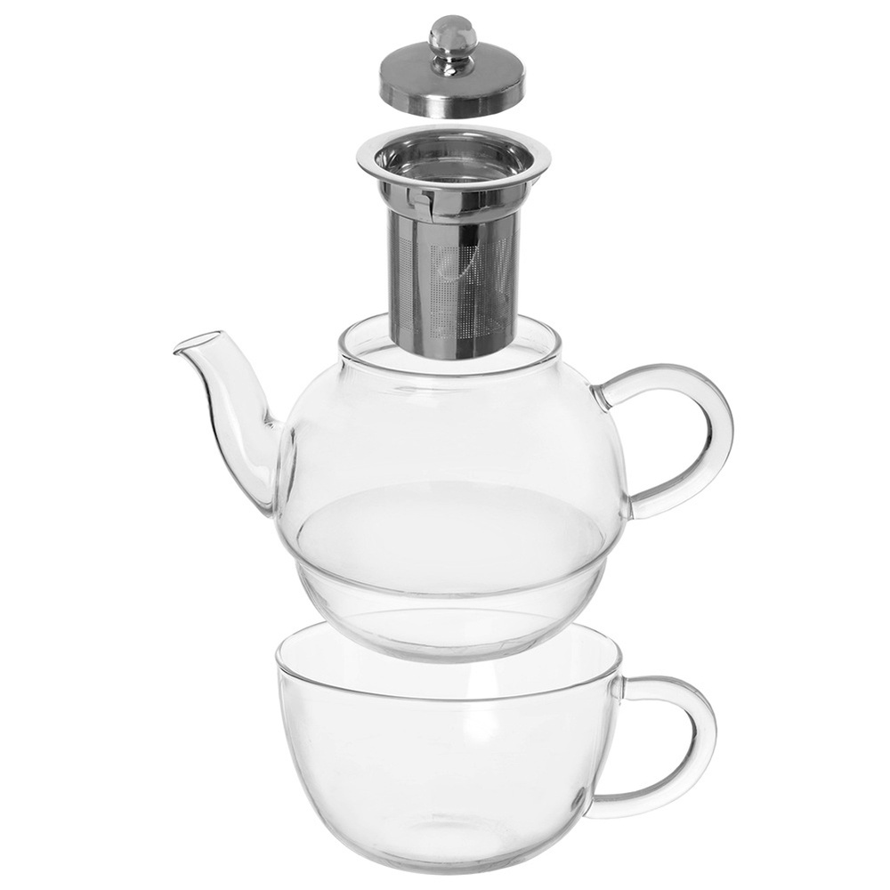 Teekannu- ja kuppisetti - Käytännöllinen setti teen hauduttamiseen ja tarjoiluun, joka koostuu 350 ml:n teekannusta ja 300 ml:n kupista, jotka voidaan säilyttää toistensa sisällä. Teekannussa on tarkkuussiivilä irtoteen ja yrttien hauduttamiseen. Teekannun ja kupin mitat ovat 17 x 10 x 14 cm. Kupin mitat ovat 13 x 10,5 x 6 cm ja teekannun mitat ovat 17 x 10 x 11 cm.