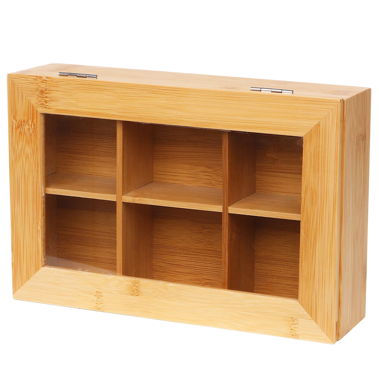 Lasitettu teelaatikko, 6 säilytyslokeroa, tyylikäs, käytännöllinen