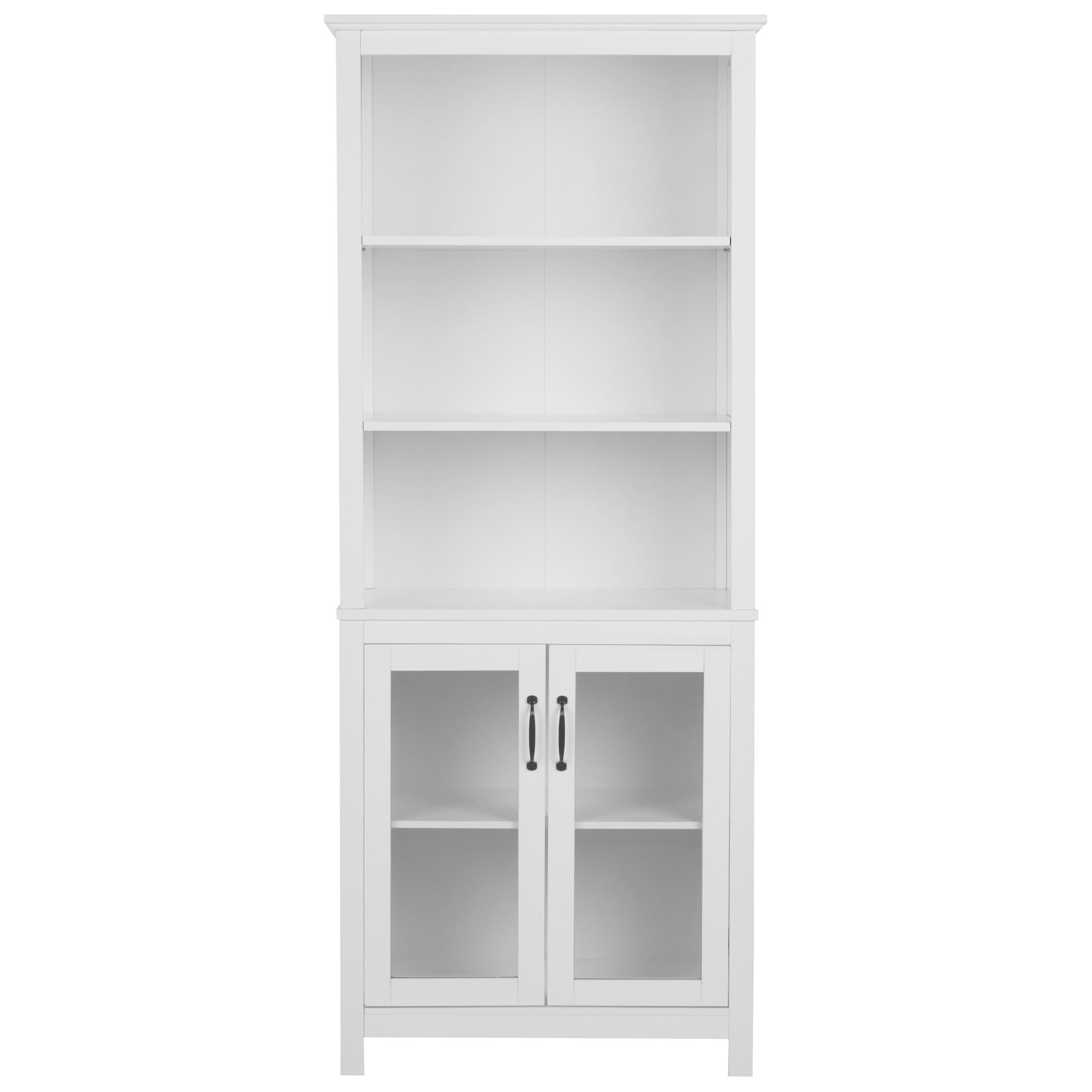 Perinteinen astiakaappi lasiovilla. Tämä koristeellinen vitriini yhdistää käytännöllisyyden ja tyylikkyyden, ja se sulautuu vaivattomasti kaikkiin sisustuksiin. Ylemmässä osassa on kolme hyllyä, jotka sopivat erinomaisesti kauniiden posliini- tai keräilyesineiden esittelyyn. Alaosassa on kaksi hyllyä, jotka kätkeytyvät lasiovien taakse ja tarjoavat lisää säilytystilaa, pitäen esineet järjestyksessä. Kaapin universaali valkoinen väri lisää puhdasta ilmettä tilaan kuin tilaan, kun taas MDF-levystä valmistettu runko tarjoaa vakauden.