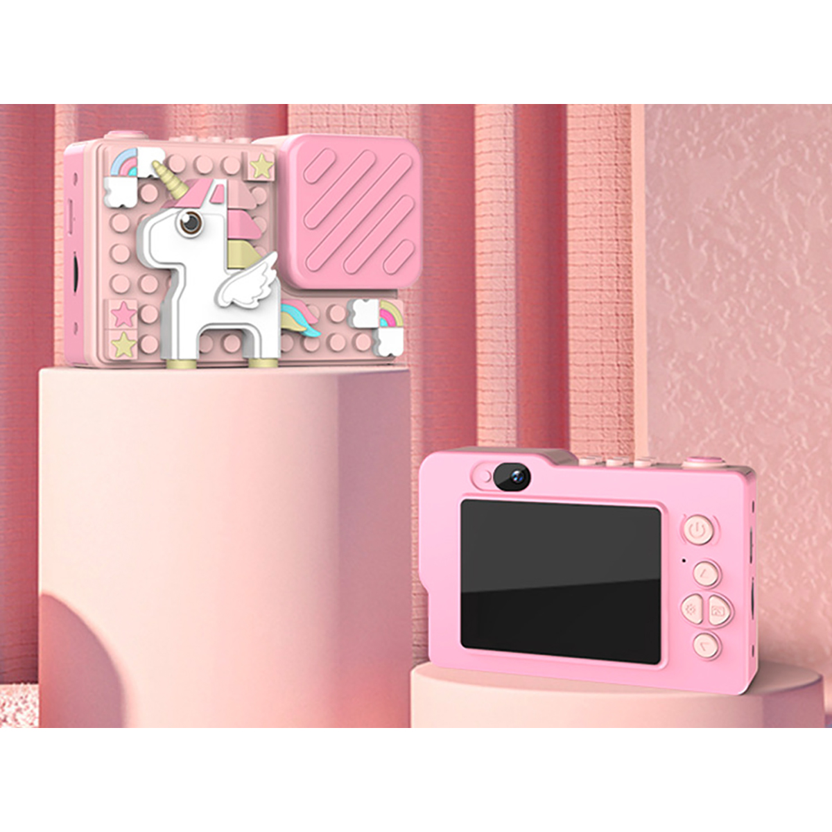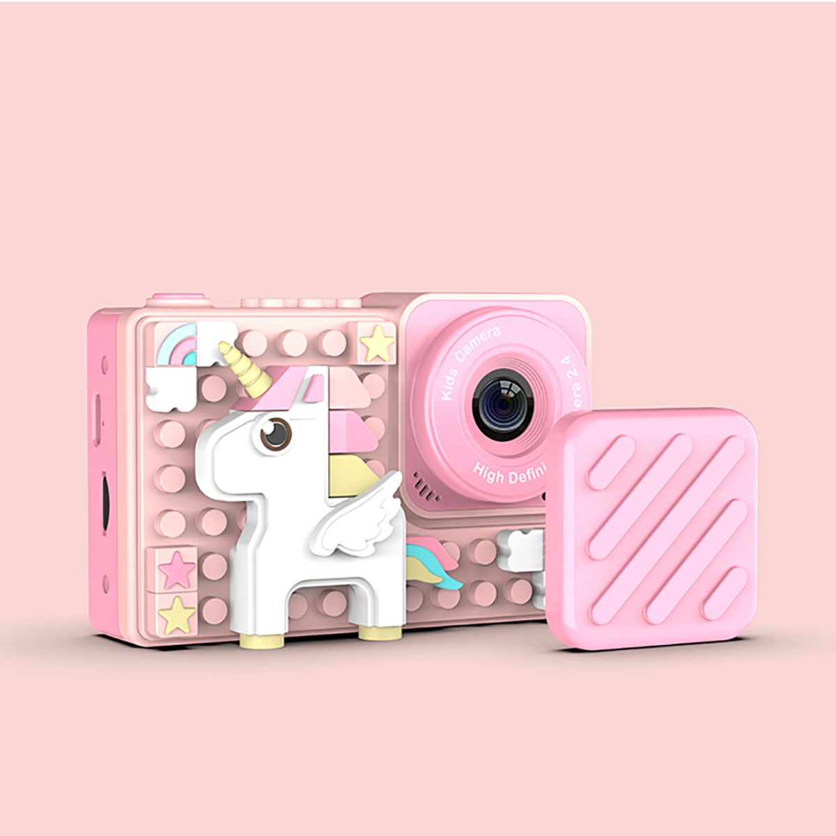 Hämmästytä lapsesi Pixel Unicorn -kameralla. Se tallentaa valokuvia ja videoita HD-tarkkuudella 18 megapikselin kennon ja kääntyvän linssin ansiosta. Sen muokattava, palikkamainen muotoilu ja sisäänrakennetut pelit tekevät jokaisesta otoksesta hauskan kokemuksen. 2,4 tuuman värinäyttö tekee navigoinnista helppoa ja värikästä. Maaginen lahja luovuuden stimuloimiseksi 4-vuotiaasta alkaen.