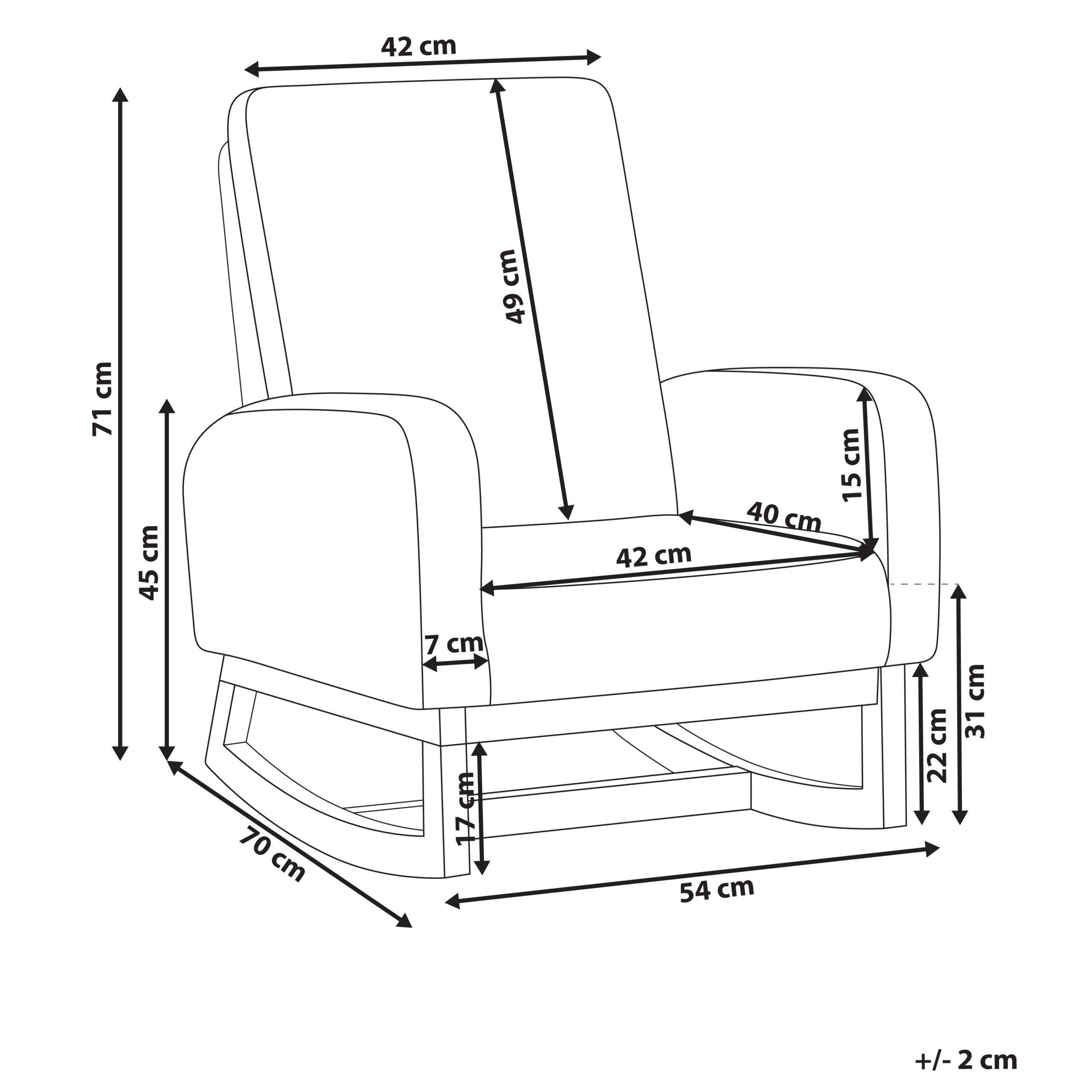 Käsinojan korkeus: 45 cm