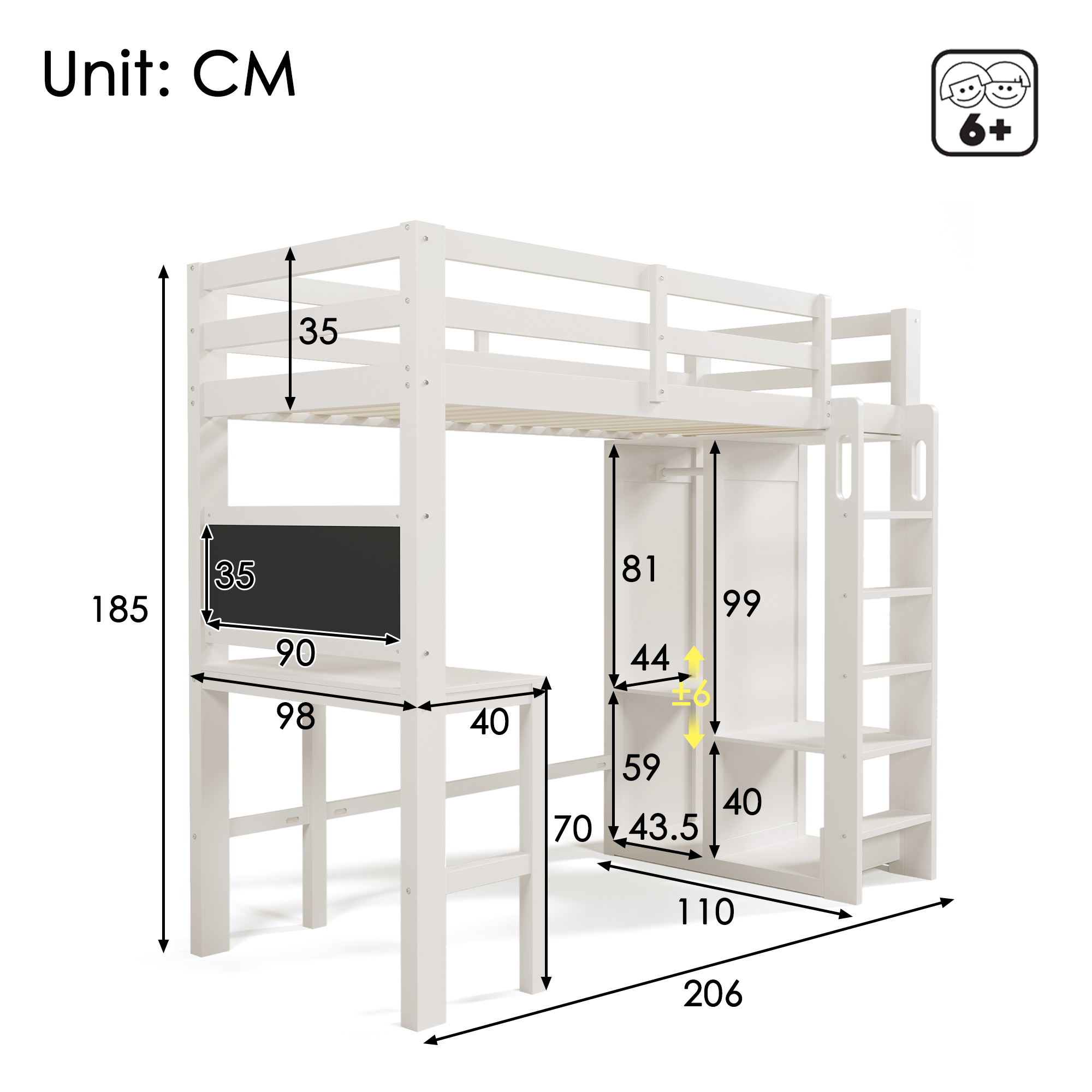 【Kaksipuolinen liitutaulu ja työpöytä】Tämä moderni parvisänky yhdistää yksinkertaisen valkoisena makuutilan, opiskelualueen ja säilytystilan yhteen designiin. Käytännöllinen työpöytä sopii erinomaisesti jokapäiväiseen käyttöön, kun taas kaksipuolinen liitutaulu tarjoaa tilaa luovalle graffitille. Modulaarinen muotoilu hyödyntää pystysuuntaisen tilan optimaalisesti ja on ihanteellinen tilaa säästävä ratkaisu opiskelijoille ja ammattilaisille.