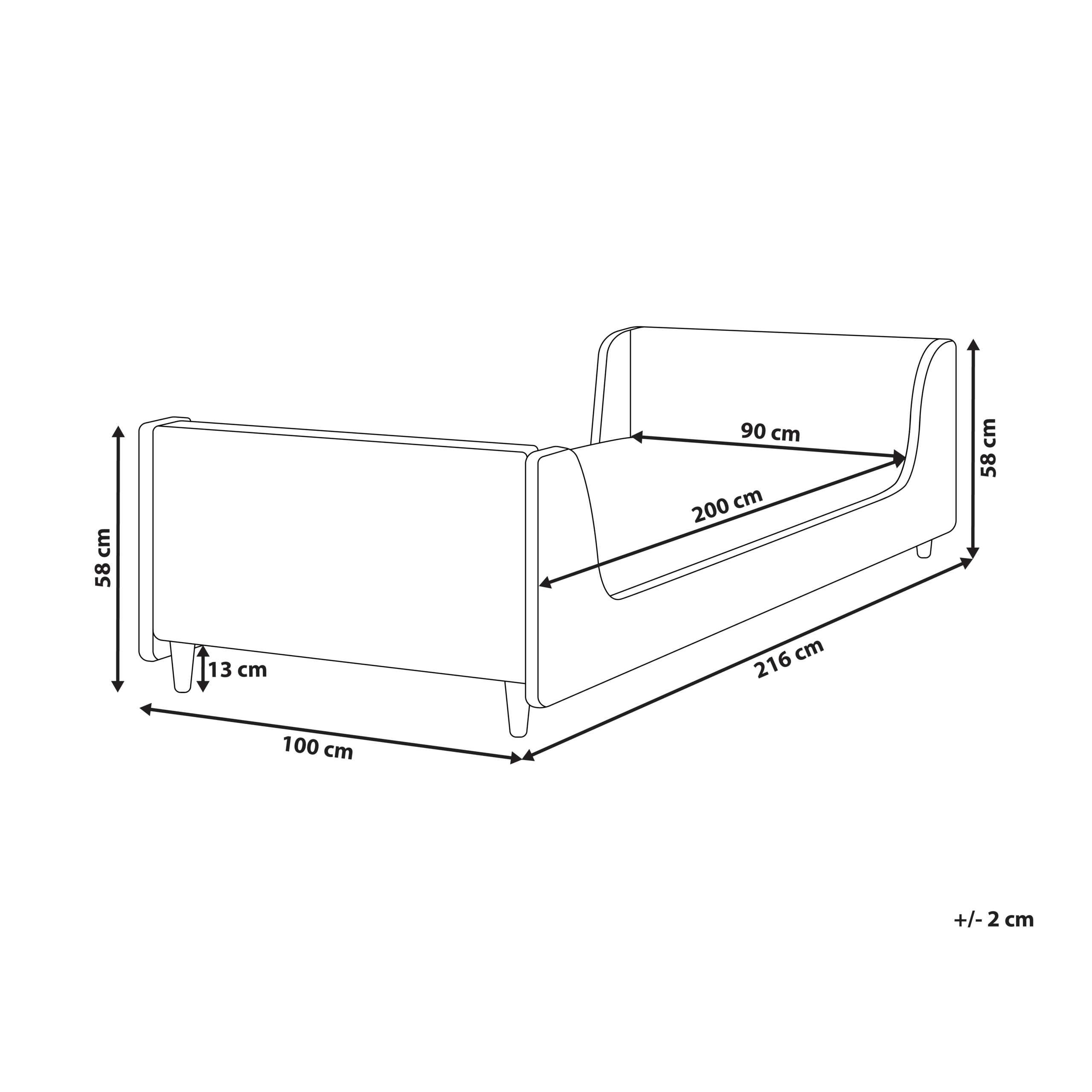 Moderni verhoiltu sängynrunko. Luo viihtyisä ja tyylikäs nukkumatila tällä kauniisti muotoillulla yhden hengen sängyllä. Pehmeällä bukleekankaalla verhoiltu sänky luo lämpimän ja kutsuvan tunnelman, joka sopii erinomaisesti lastenhuoneeseen. Matalilla sivupaneeleilla varustettu kevyesti kaareva runko tarjoaa miellyttävän ja suojaisan tilan, tehden sänkyyn nousemisesta sekä sieltä poistumisesta vaivatonta. Tämä tukevilla jaloilla tuettu sänky on täydellinen yhdistelmä mukavuutta, charmia ja toimivuutta.