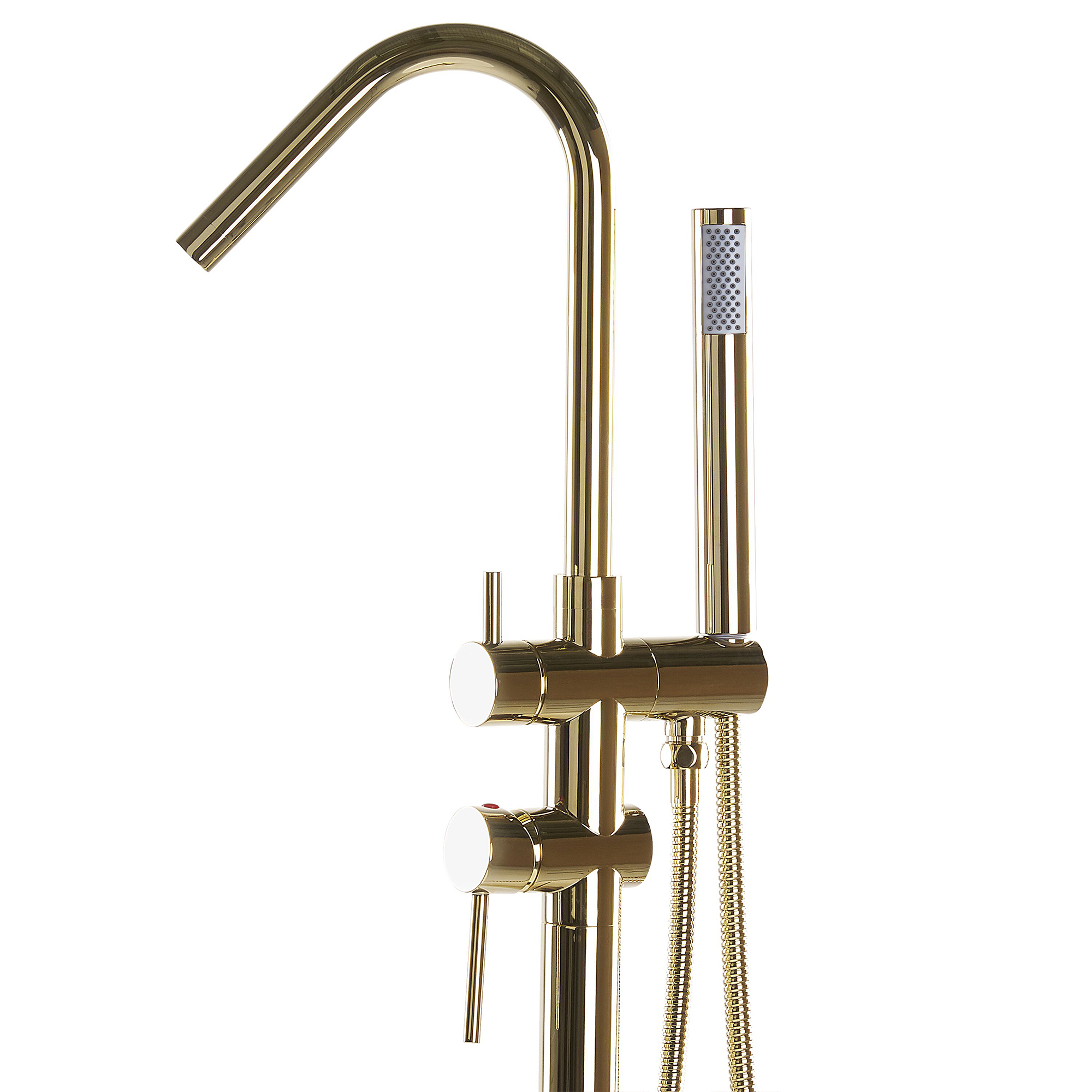 Lattiahana ja käsisuihku vapaasti seisovaan ammeeseen. Tämä lattialla vapaasti seisova hana on erittäin tyylikäs ja se sopii jokaiseen kylpyhuoneeseen. Se on valmistettu messingistä ja kaikki pinnat ovat kaksoiskromattuja. Hanan säätimet ovat käytännölliset ja helpot käyttää. Laadukas lattiahana on kestävä ja erittäin helposti puhdistettava.