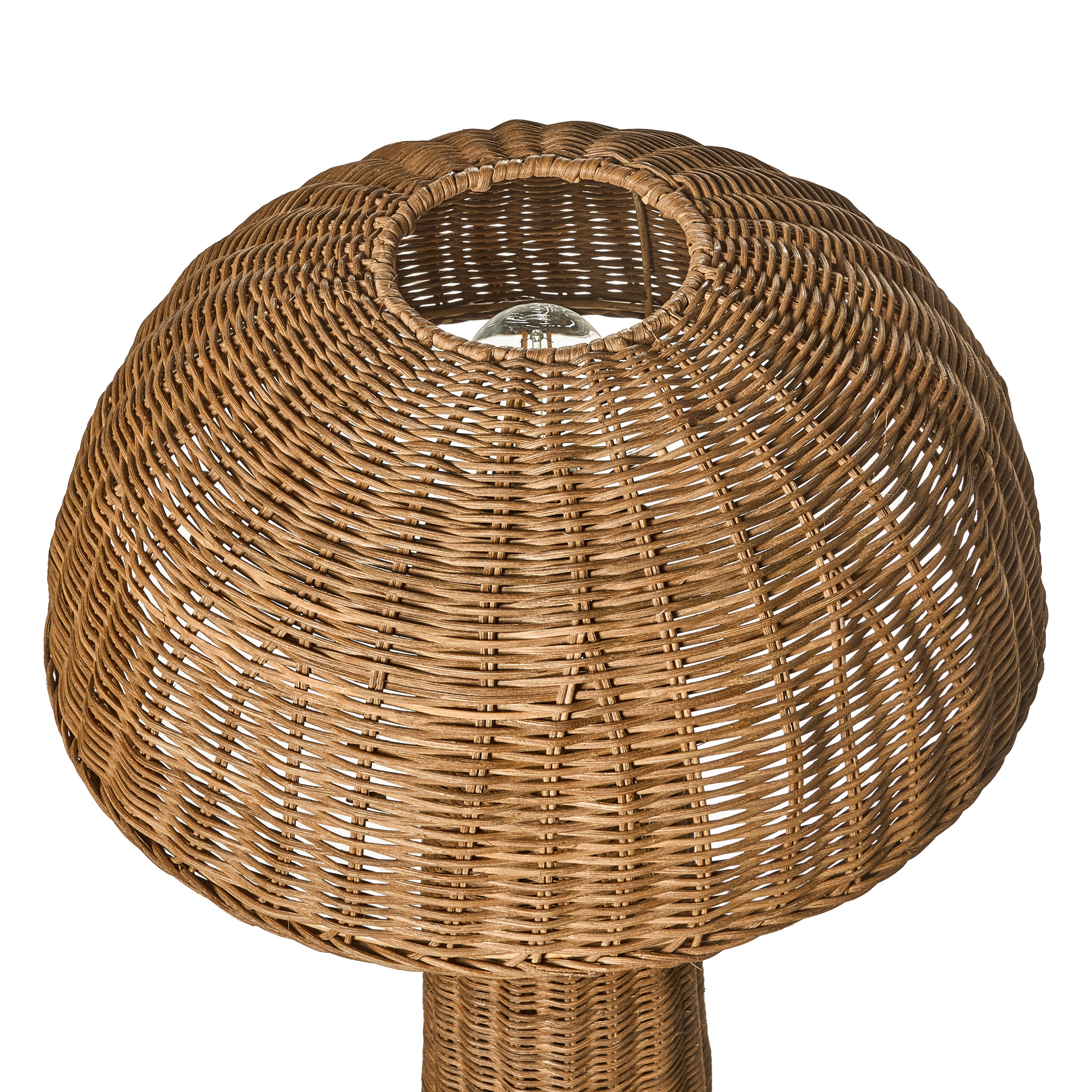 Boho-tyylinen punottu sienivalaisin. Tuo sisustukseen ripaus luontoa tällä kokonaan luonnonrottingista valmistetulla lattiavalaisimella. Jalusta ja varjostin muodostavat yhtenäisen kokonaisuuden, jossa korostuvat boho-tyyli ja ympäristöystävällisyys. Valaisin heijastaa pehmeää hajavaloa, luoden lämpimän ja kodikkaan tunnelman olohuoneeseen tai makuuhuoneeseen. Se on täydellinen lisä mihin tahansa tilaan, jossa luonnollisuus ja rentoutuminen ovat etusijalla.