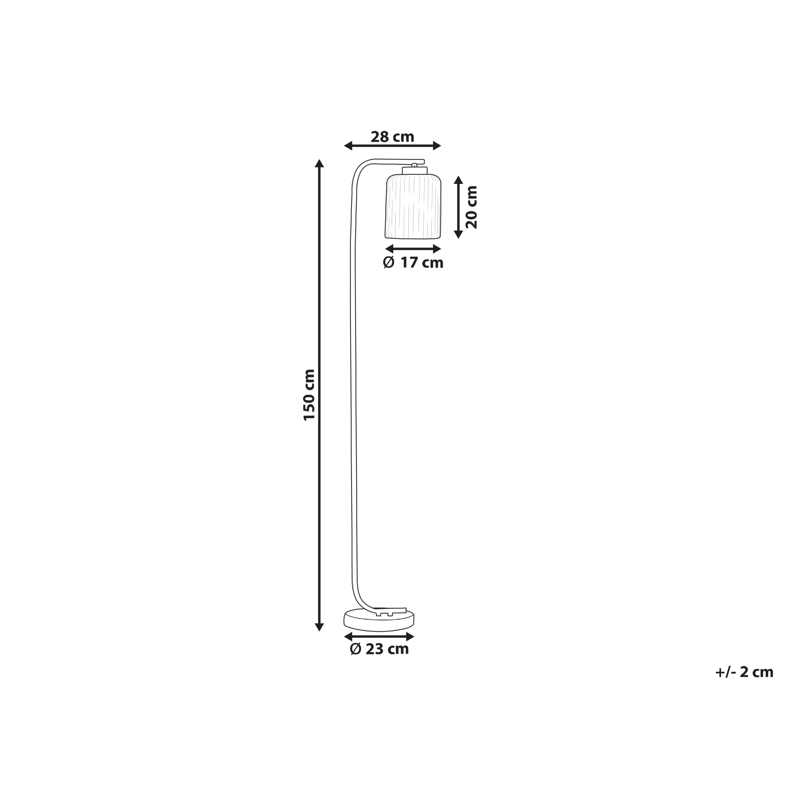Moderni jalkalamppu lasivarjostimella. Tämä näyttävä lattiavalaisin on loistava esimerkki kodikkaan industriaalisesta designista. Se on valmistettu mattapintaisesta jauhemaalatusta kestävästä teräksestä, joka tarjoaa kestävyyttä vuosien varrella, sopien kauniisti yhteen kiiltävän messinkisävyisen pohjan kanssa. Kontrastinen valkoinen lasivarjostin takaa tunnelmallisen valon jokaiseen tilaan, oli kyseessä sitten olohuone, makuuhuone tai ruokailuhuone.