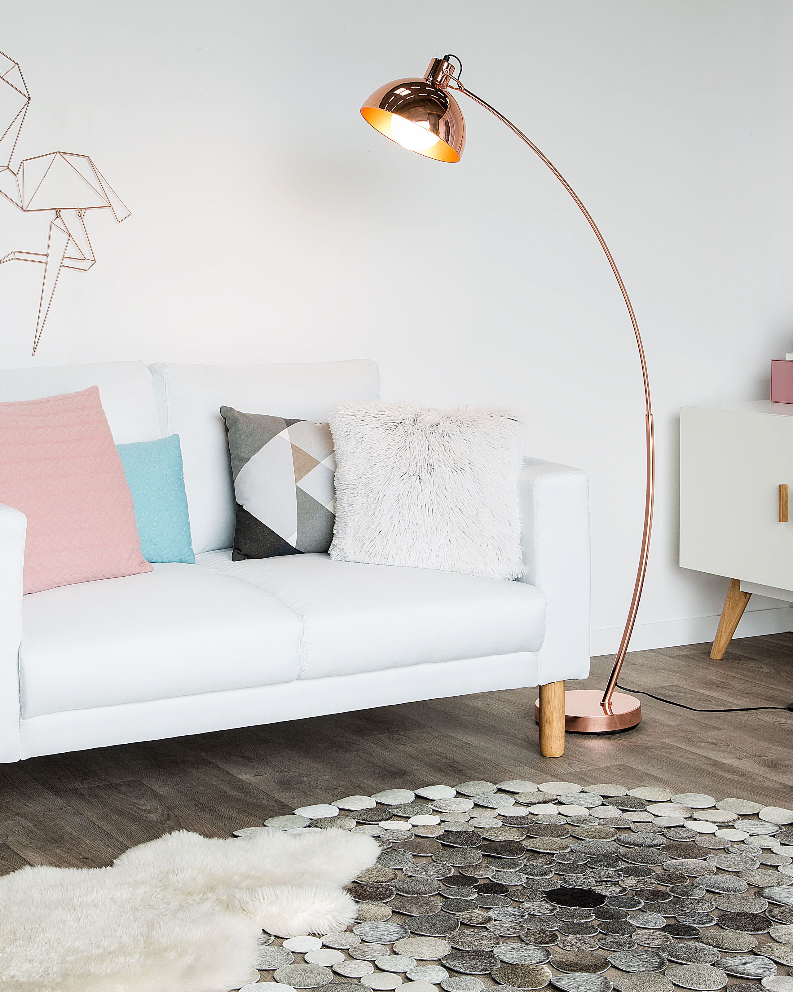 Industriaalinen kaarivalaisin. Monipuolinen ja moderni lattiavalaisin. Kaarimainen jalka sekä lampunvarjostin ovat molemmat kauniin kuparin väriset, joten se sopii hyvin mihin tahansa moderniin sisustukseen. Perinteinen valaisin sopii niin olohuoneeseen kuin makuuhuoneeseenkin.