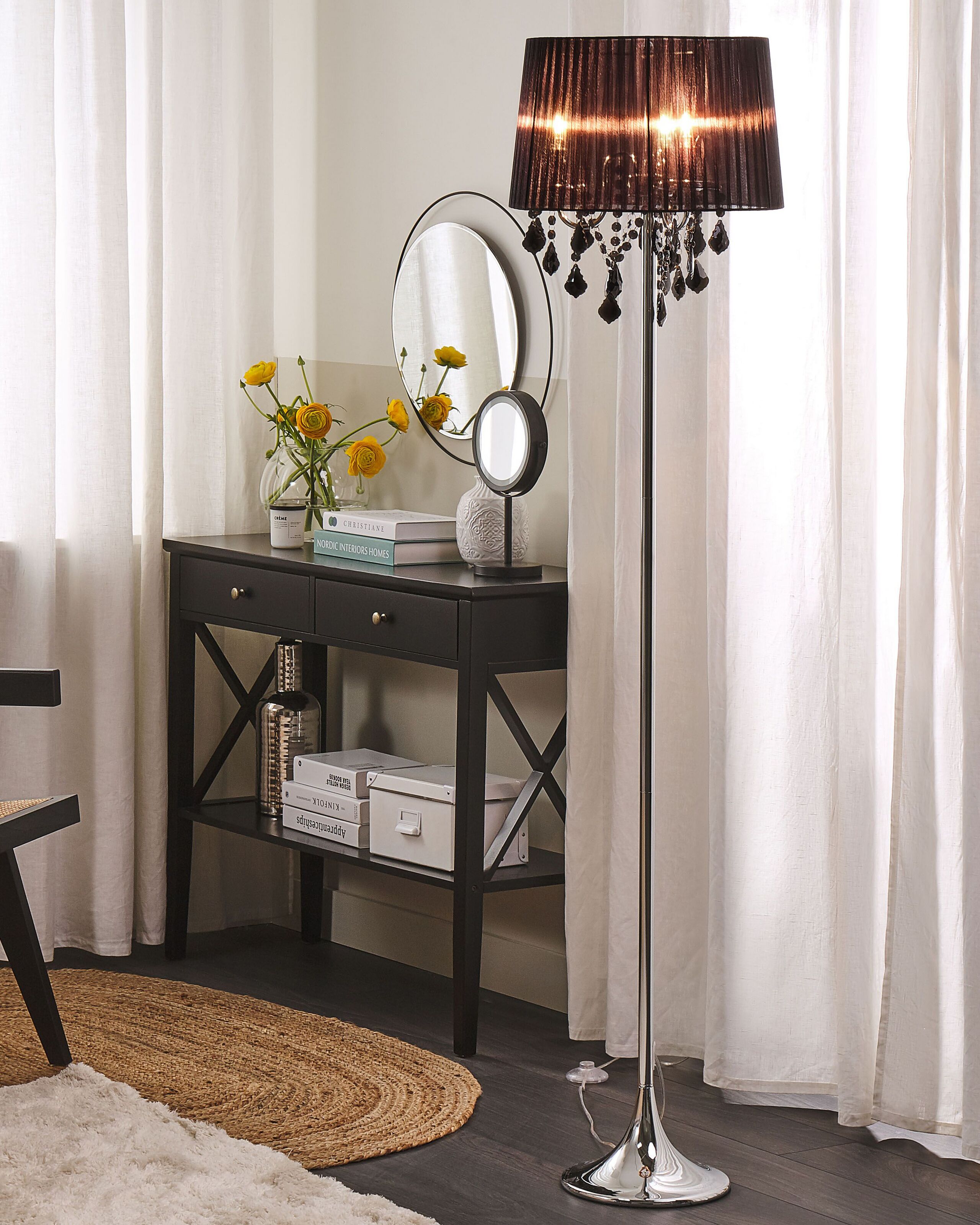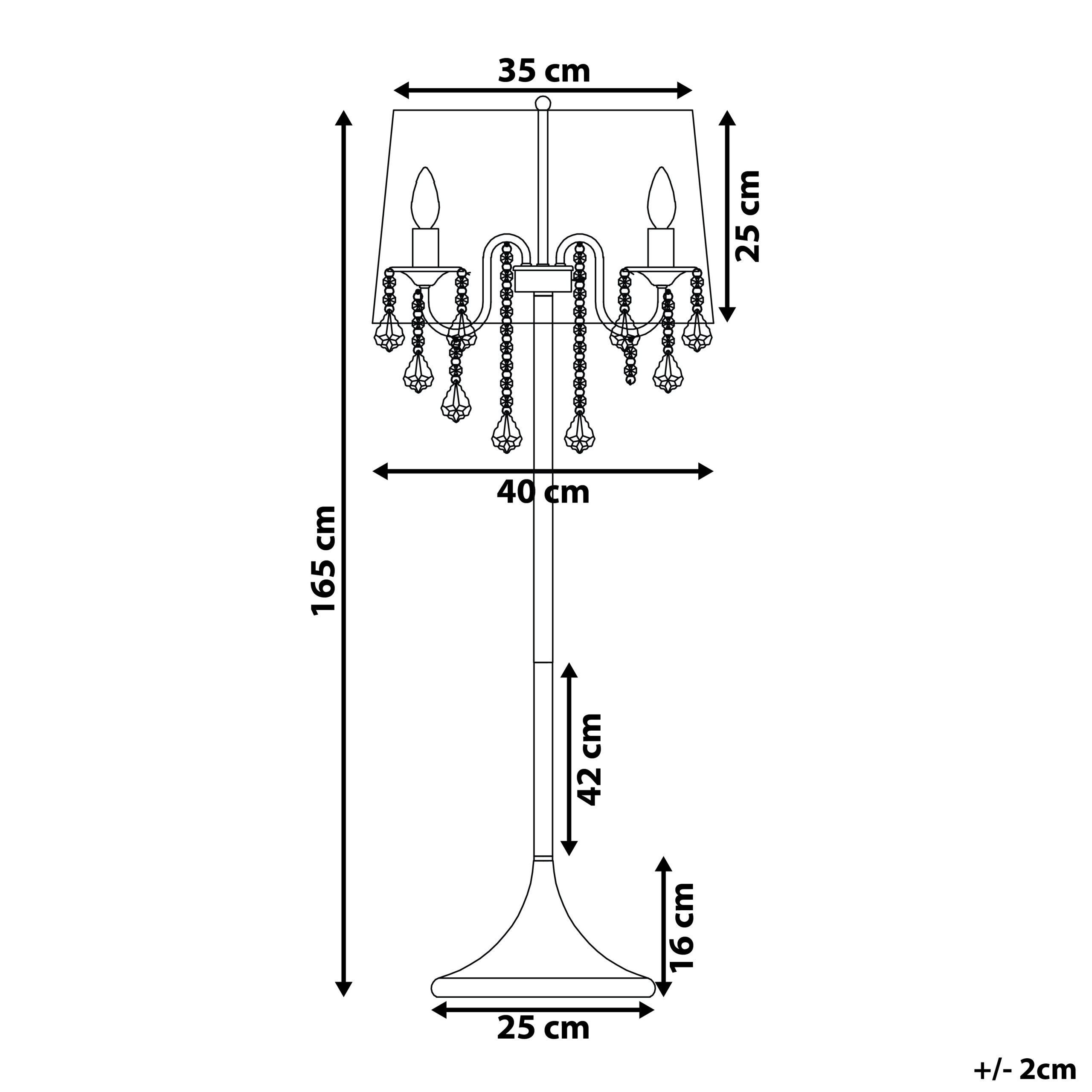Elegantti seisova valaisin akryylikristalleilla. Tämä lattiavalaisin on välttämätön lisä mihin tahansa makuuhuoneeseen, olohuoneeseen tai ruokailutilaan, johon tarvitaan ripaus glamouria. Klassinen muotoilu ja ylelliset akryylikristallit muodostavat ainutlaatuisen kokonaisuuden, joka erottuu edukseen sisustuksessa kuin sisustuksessa. Valaisimen kolme kantaa ja musta kangasvarjostin luovat kirkkaan mutta hellävaraisen hajavalon. Vankan metallijalan peilaava, hopeinen viimeistely täydentää lattiavalaisimen upeaa ulkonäköä täydellisesti.