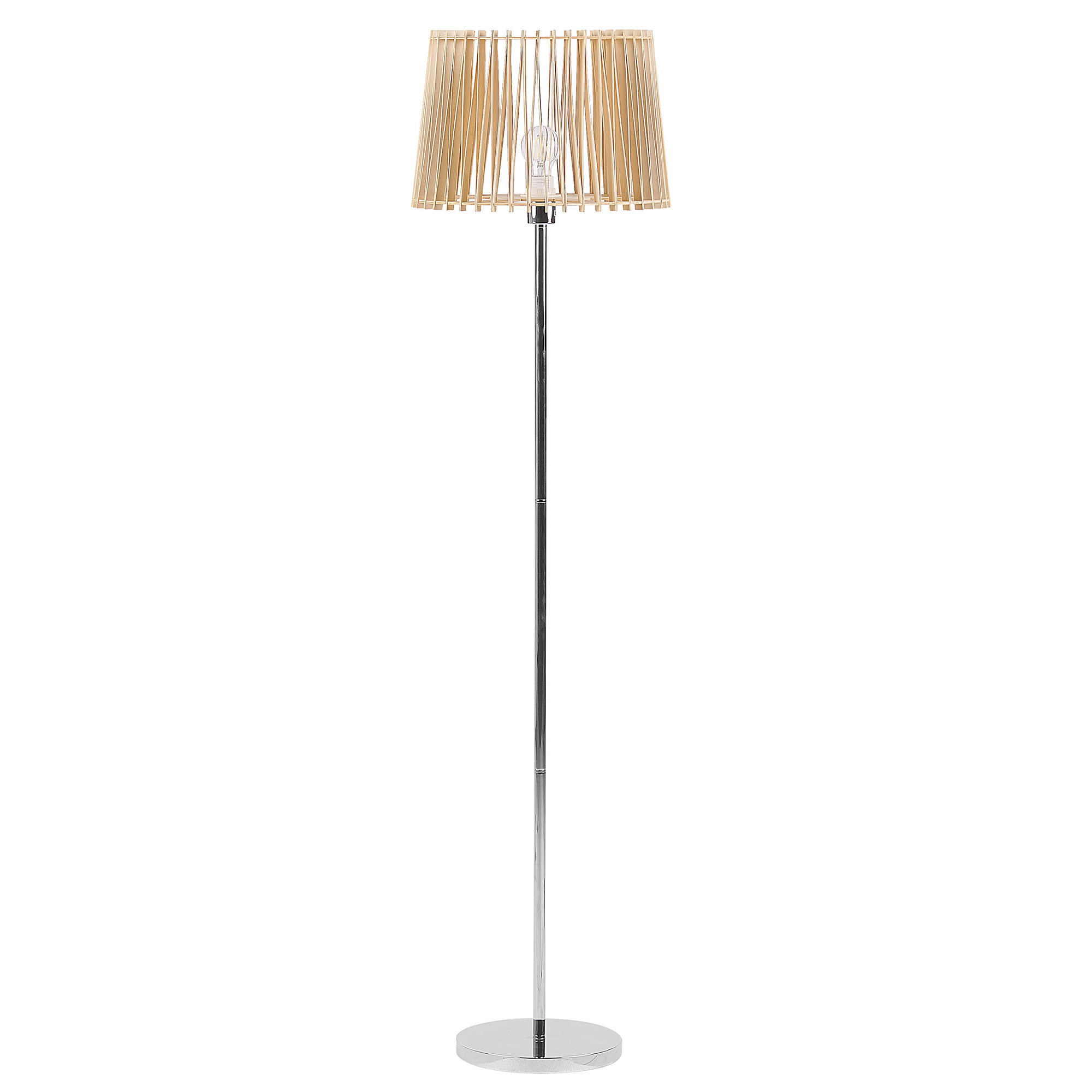 Trendikäs lattiavalaisin. Tämä pitkä lattiavalaisin on ainutlaatuinen yhdistelmä glamour-eleganssia ja skandinaavista tyyliä. Hopeinen metallipohja on vakaa ja kestävä, mutta se heijastaa myös kauniisti valoa, luoden kodikkaan ilmapiirin. Varjostin on valmistettu pitkistä ja ohuista MDF-säleistä, ja se luo kauniita varjoja seiniin.