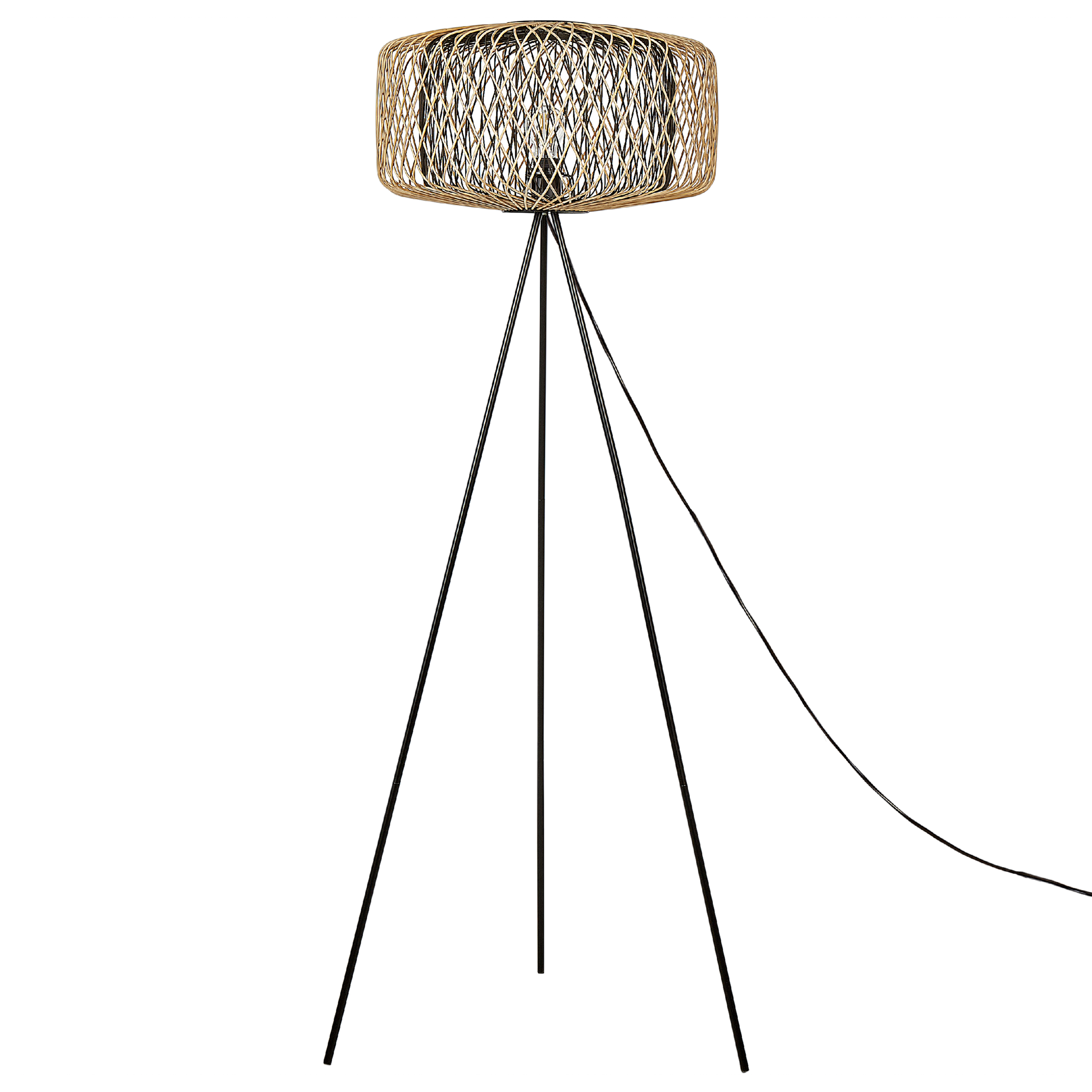 Boho jalkalamppu bambuvarjostimella. Tämä poikkeuksellinen lattiavalaisin koristaa minkä tahansa olohuoneen, makuuhuoneen tai työtilan. Sen avonainen ovaali varjostin on valmistettu bambusta, joka antaa valaisimelle luonnollisen ilmeen. Poikkeuksellinen varjostin luo lämpimän ja lempeän hajavalon. Kaksivärisyys tekee valaisimesta mielenkiintoisen korosteen, joka toimii täydellisenä koristeena myös sammutettuna. Tukeva kolmijalkainen jalusta takaa vakauden. Se sopii erinomaisesti moniin erilaisiin sisustuksiin.