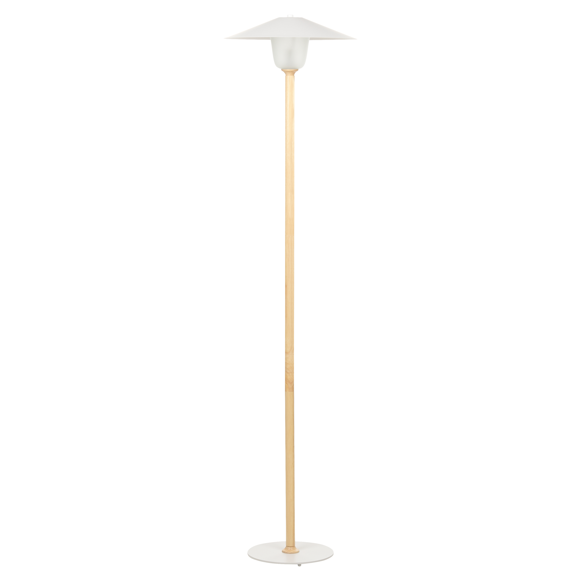 Tammipuinen jalkavalaisin. Tämä tammipuinen lattiavalaisin huokuu lämpöä ja eleganssia. Sen siro muotoilu on kruunattu metallisella kartiomaisella valkoisella varjostimella, joka ilmentää yksinkertaisuutta ja minimalismia. Himmeä lasivarjostin luo pehmeän, hajautetun valaistuksen, joka täydentää moderneja sisätiloja, tarjoten samalla toiminnallista valaistusta. Ihanteellinen niille, jotka arvostavat luonnonmateriaalien ja nykyaikaisen muotoilun yhdistelmää sisustuksessa.
