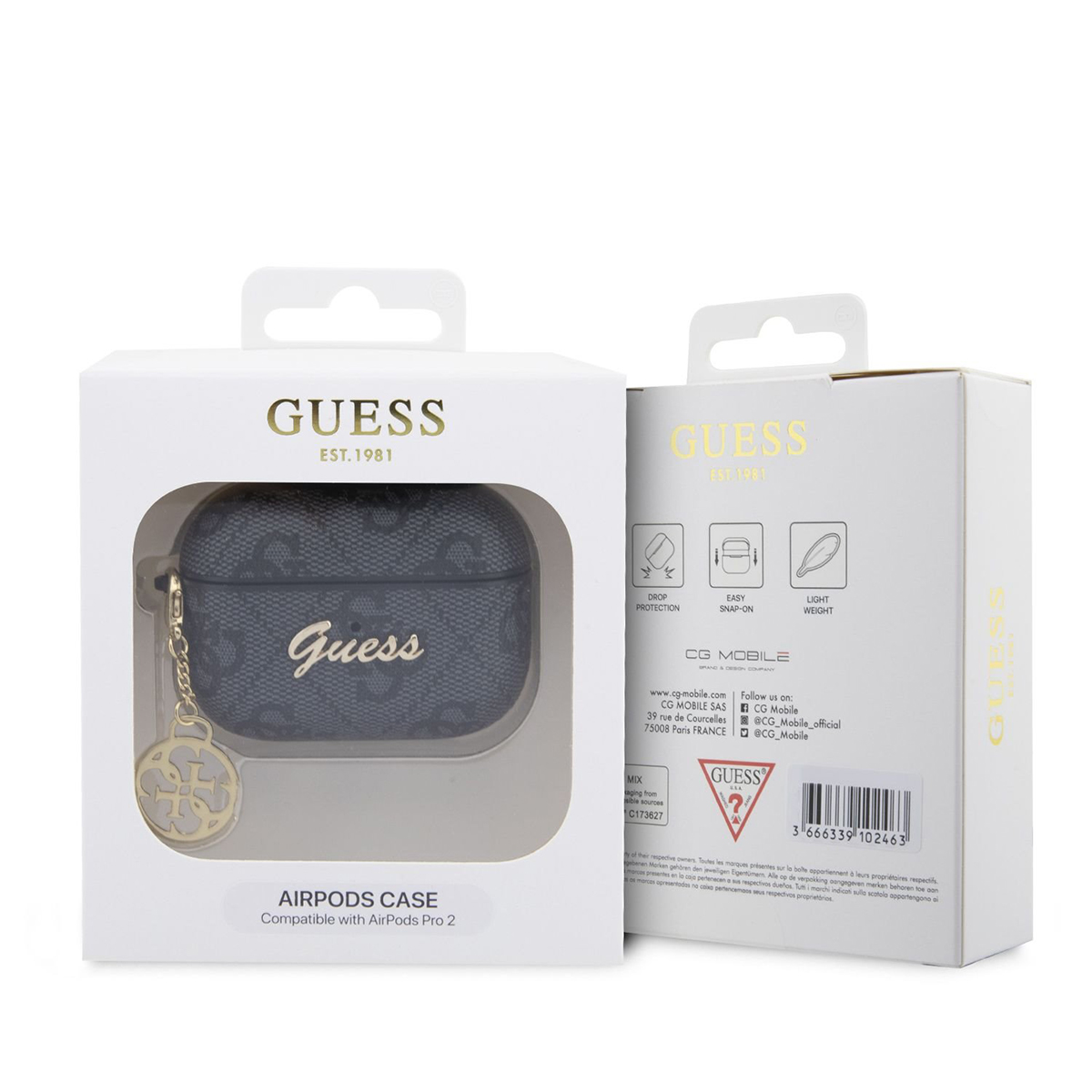 Tämä musta kotelo, jossa on GUESSin charmit, on räätälöity AirPods Pro 2 -laitteellesi. Se on valmistettu polykarbonaatista ja PU-muovista, joka suojaa AirPodisi pölyltä ja naarmuilta. Integroitu charmi toimii koriste-esineenä, joka korostaa koteloa. Allekirjoitettu 4G-kuvio ja GUESS-logo kultaisessa metallissa vain lisäävät kotelon ylellistä tunnetta.
