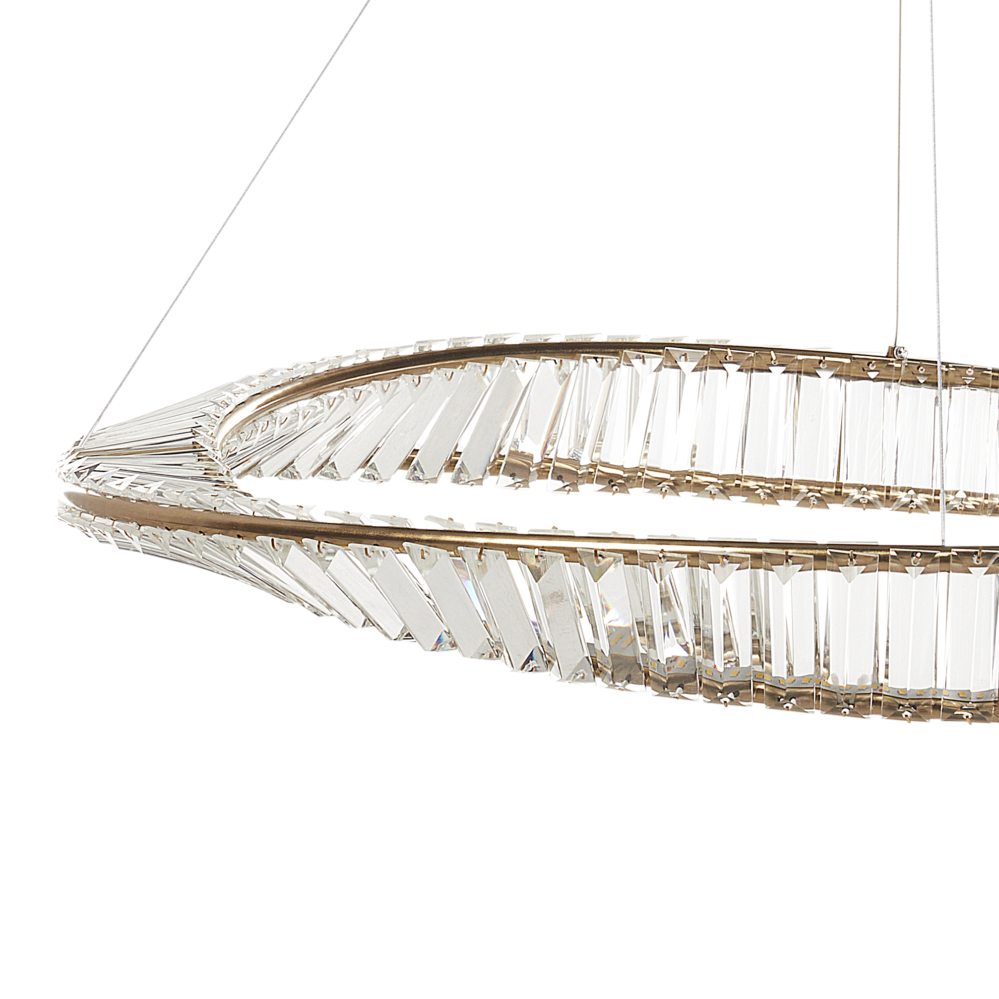 Moderni riippuvalaisin LED-valoilla. Tämä tyylikkäästi muotoiltu, kullanvärinen kattokruunu on valmistettu kestävästä raudasta. Integroiduilla LED-valoilla varustettu valaisin tuo jokaiseen sisustukseen modernia estetiikkaa. Riippuvalaisimessa on myös säädettävä johto, jonka avulla valaisimen korkeutta on helppo muokata tilan mukaan.