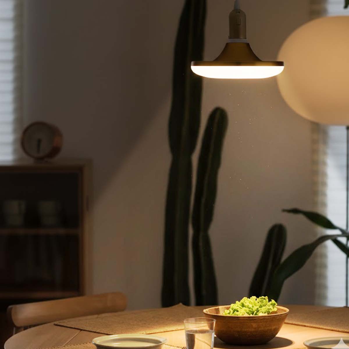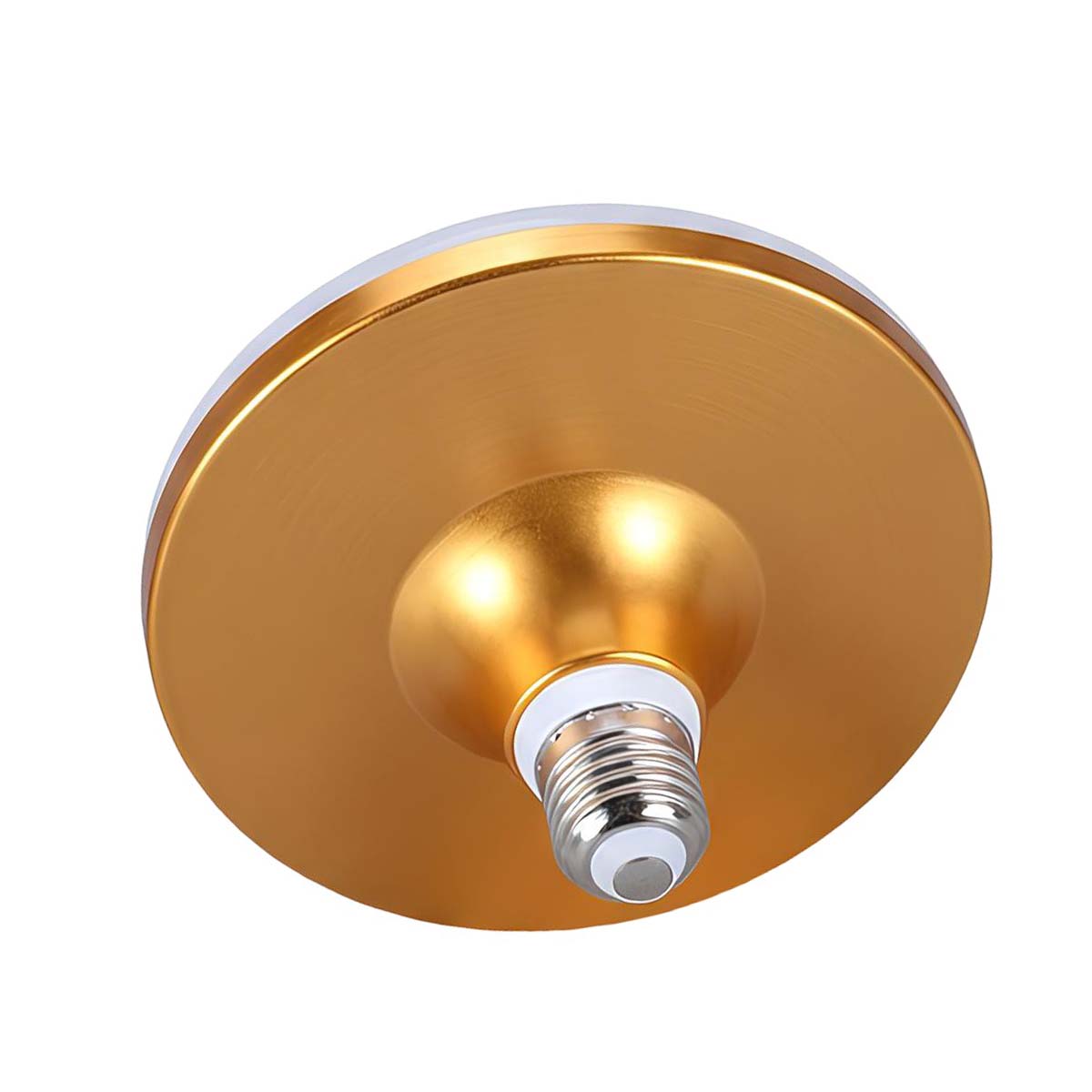Tämä lautasen muotoinen 40 W:n LED-kattovalaisin on suunniteltu laajaan ja tasaiseen sisävalaistukseen. Sen opaalinvalkoinen diffuusori levittää valon 180°:n kulmaan varjojen minimoimiseksi. Kultaiseksi viimeistelty metallirunko edistää lämmön haihtumista ja antaa samalla hillityn koristeellisen vaikutelman. E27-kierrekanta takaa yhteensopivuuden tavallisten pistorasioiden kanssa.