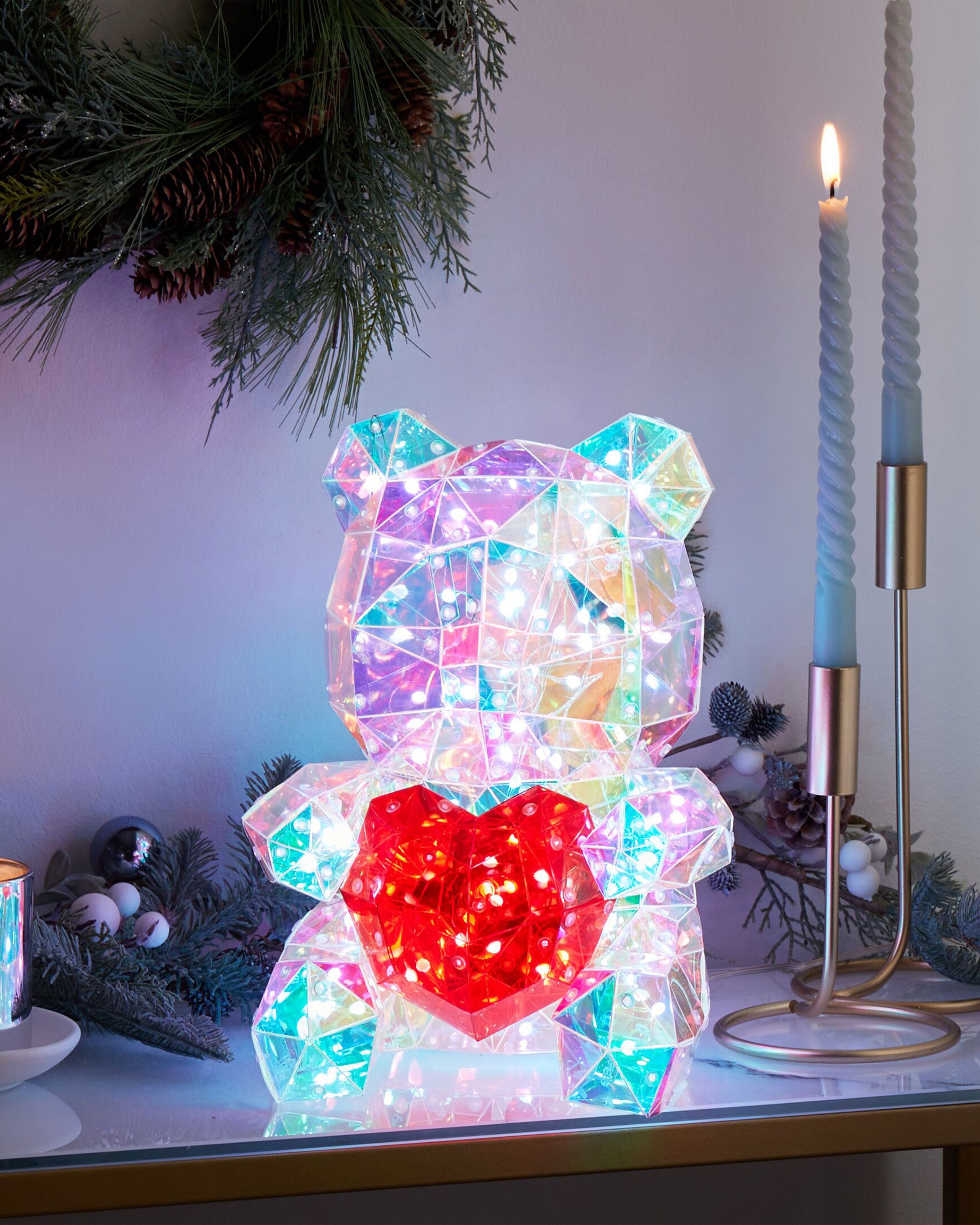 Nallevalokoriste. Tämä valaistu nallekarhu on älykäs LED-koriste, joka hurmaa niin lapset kuin aikuisetkin. Koristetta ohjataan helppokäyttöisen sovelluksen avulla. Se mahdollistaa valojen synkronoinnin musiikin kanssa, valinnan valmiista valaistustiloista tai omien valaistusjaksojen luomisen. Lisäksi ajastimen avulla voit valita eri ajankohdat ja päivät, jolloin valot kytkeytyvät päälle. USB-liitännällä toimiva sydäntä lämmittävä nallekarhu tuo ylimääräisen lämpimän kosketuksen tilaasi.