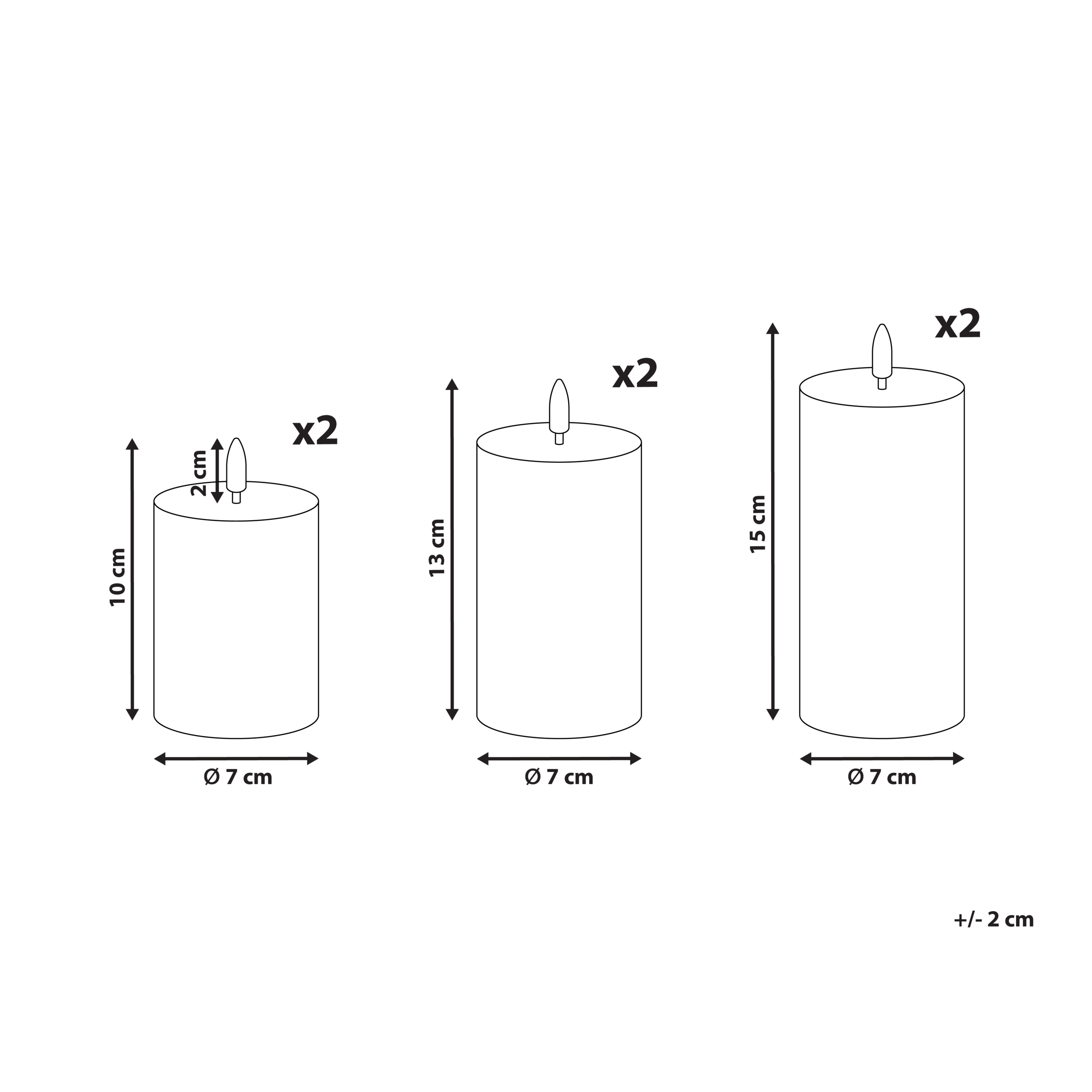 LED-kynttiläsetti 6 kpl BRAISE 10/13/15 cm Beige