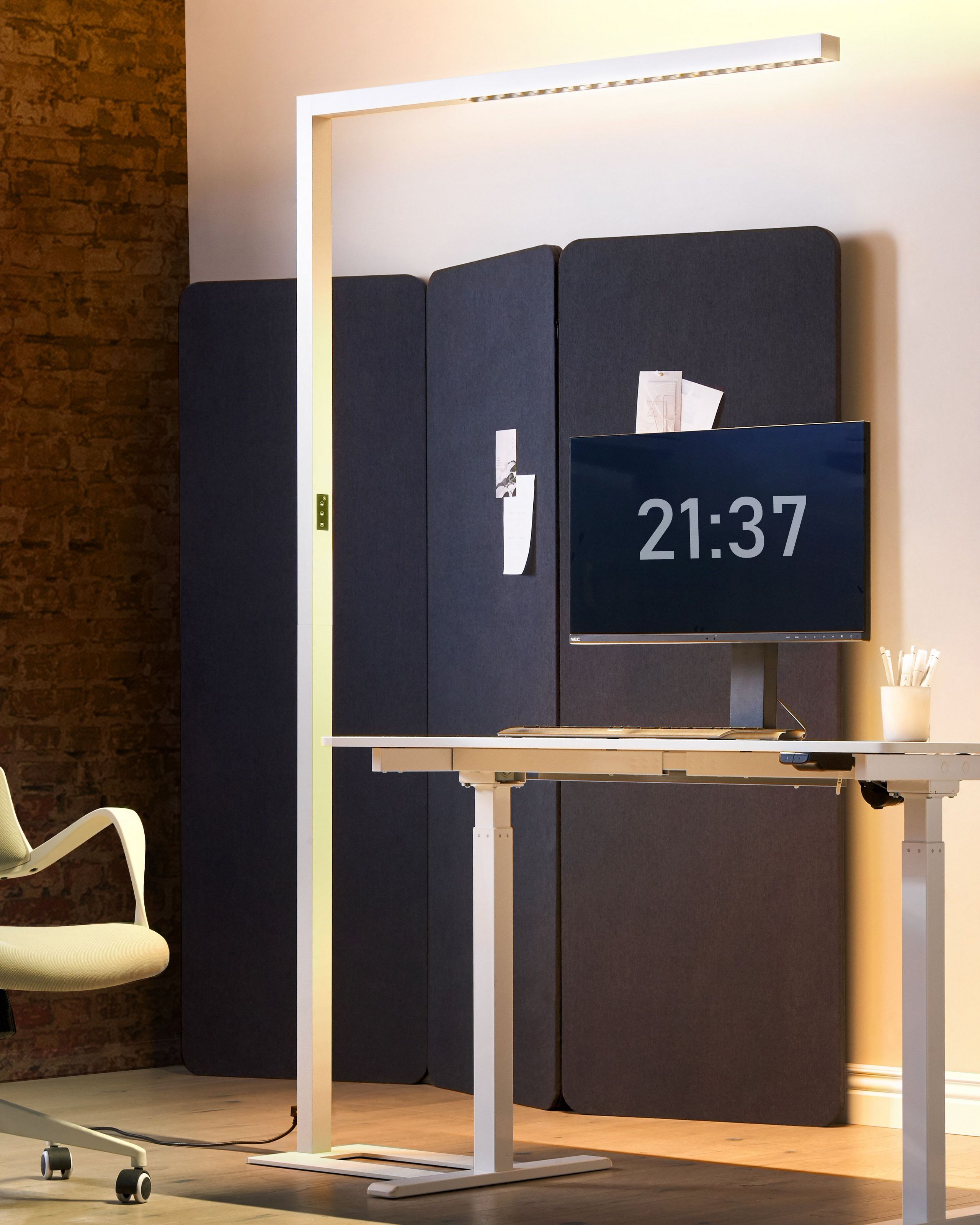 Korkea työhuoneen valaisin liiketunnistimella. Tämä LED-lattiavalaisin on loistava lisä opiskelu- tai työtilaan. Useat käytännölliset toiminnot tekevät sen käytöstä miellyttävää ja yksinkertaista – sekä energiaa säästävää. Tärkein ominaisuus on liiketunnistin, joka sytyttää ja sammuttaa valon itsekseen käytön mukaan. Kosketuspaneelin avulla voit käyttää valaisinta sekä kohde- että ympäristön valaistukseen tai pitää molemmat päällä. Ympäristöön mukautuva valo säätelee valon voimakkuutta automaattisesti tilan luonnollisen valaistuksen mukaan. Runko on valmistettu korkealaatuisesta alumiinista, kun taas vankka teräsjalusta takaa vakauden.