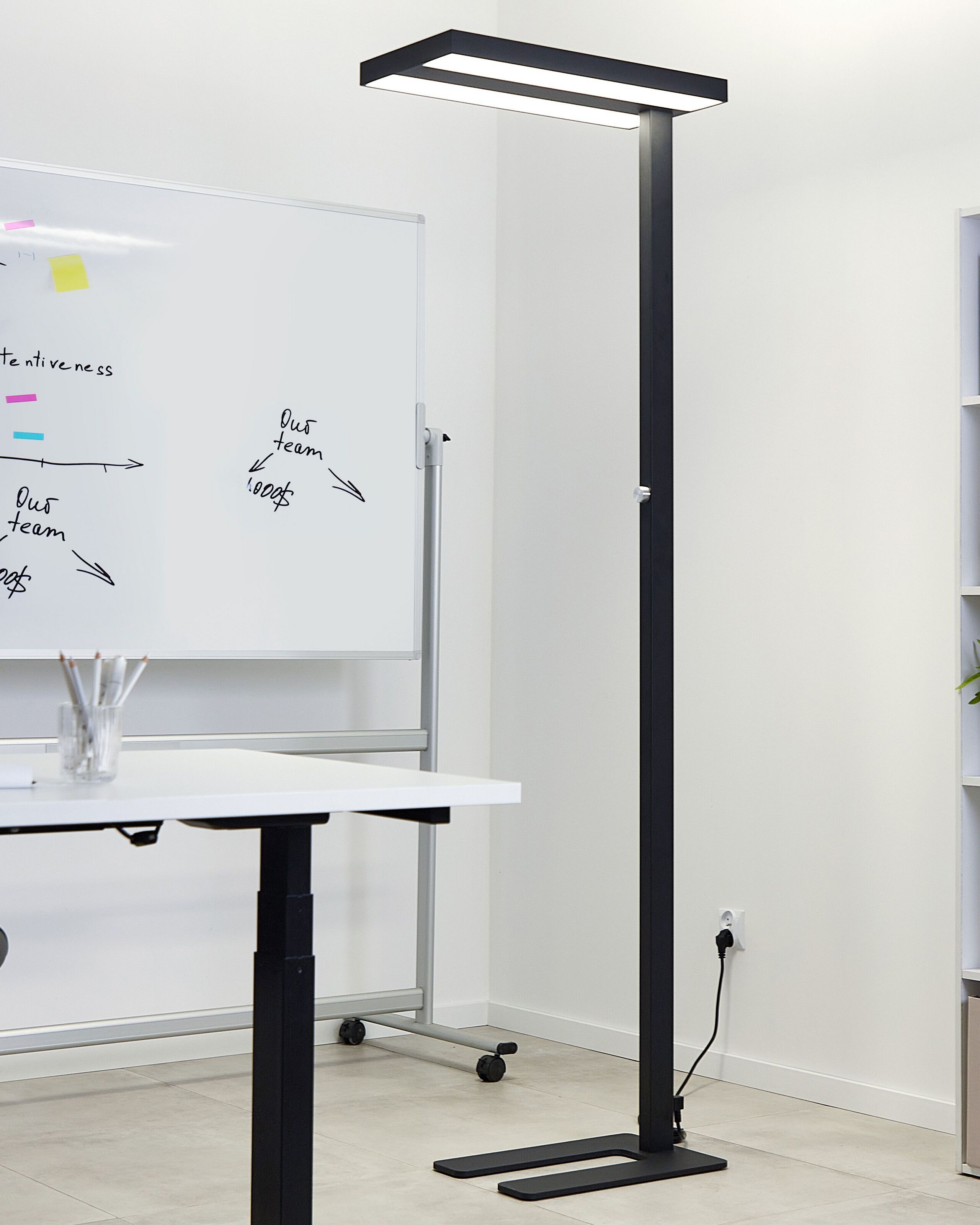 Työhuoneen seisova valaisin. Kohota työtilaasi tällä monipuolisella ja tyylikkäällä LED-lattiavalaisimella. Yksinkertaisesti muotoiltu valaisin on valmistettu kestävästä alumiinista, ja se tuo tilaan modernia tyyliä. Käyttäjäystävällisen säätönupin avulla voit vaivattomasti säätää valaistuksen voimakkuutta haluamallesi tasolle ja luoda täydellisen tunnelman mihin tahansa tehtävään. Integroidut LED-lamput säteilevät lämmintä 4000 K valoa, joka tarjoaa optimaalisen valaistuksen silmiä rasittamatta.