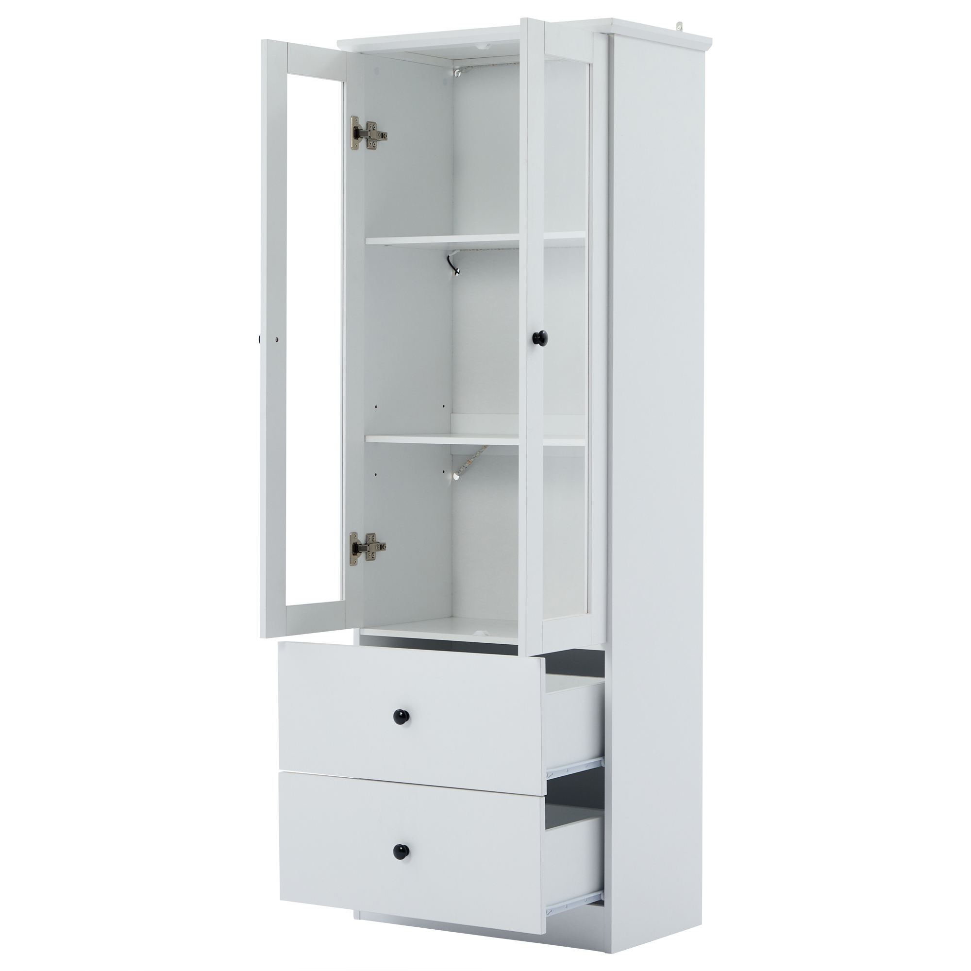 KOMHTOM kaappi tarjoaa käytännöllisen ja näyttävän ratkaisun kodin säilytykseen. Sen matta valkoinen pinta sopii yhteen monien sisustustyylien kanssa, ja mustat pyöreät vetimet täydentävät nykyaikaista ulkonäköä. Karkaistusta turvalasista valmistetut ovet tuovat lisää turvallisuutta ja kestävyyttä jokapäiväiseen käyttöön.