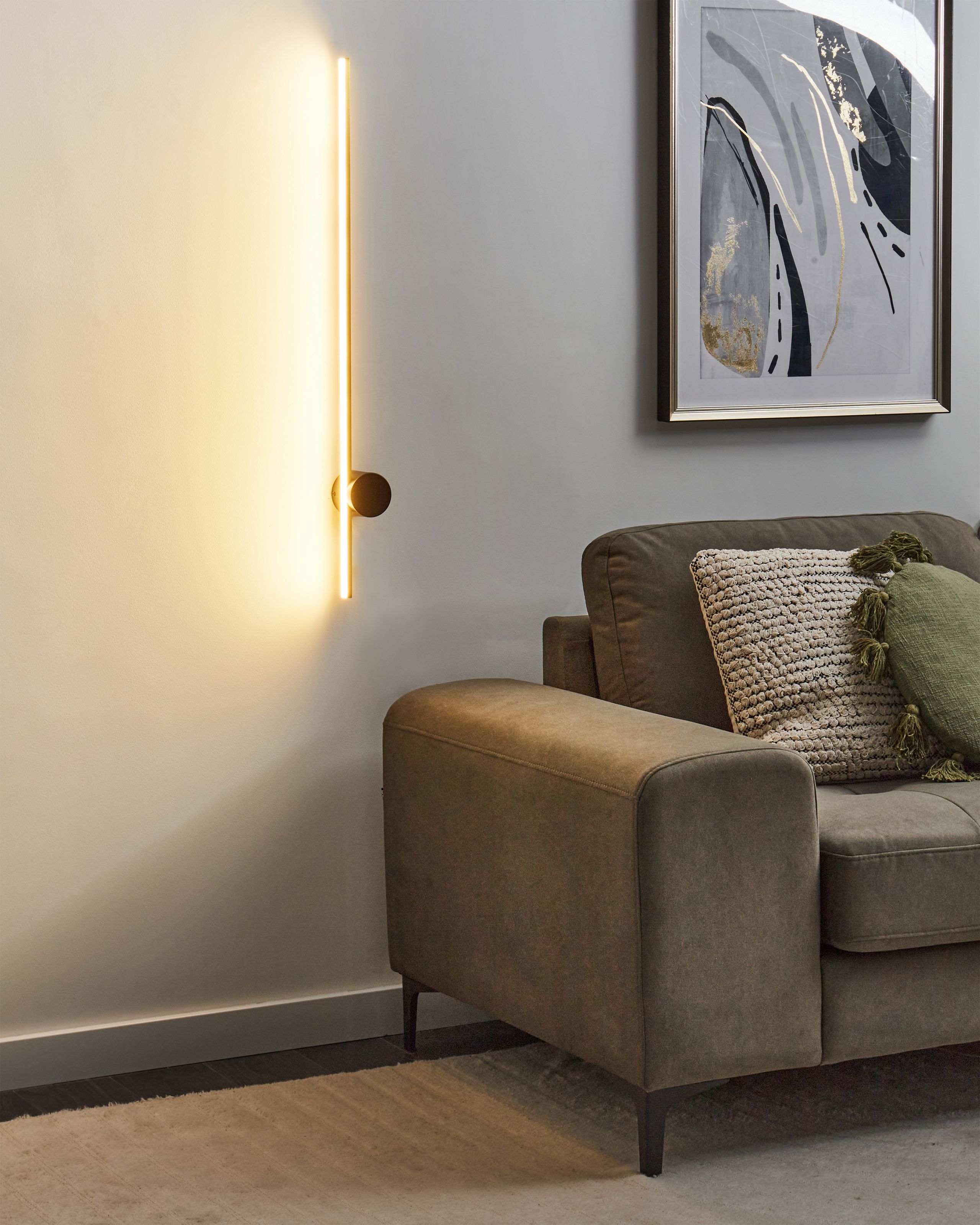 Moderni LED-valaisin seinälle. Tuo tilaan modernia tyyliä tällä minimalistisella seinävalaisimella. Tyylikkäästi muotoiltu valaisin antaa lämpimän valkoisen LED-valon, joka lisää mihin tahansa huoneeseen pehmeää ja kutsuvaa tunnelmaa. Sen hillitty muotoilu sulautuu täydellisesti osaksi nykyaikaisia sisustuksia, sillä se tarjoaa sekä hienovaraista eleganssia että käytännöllistä valaistusta.