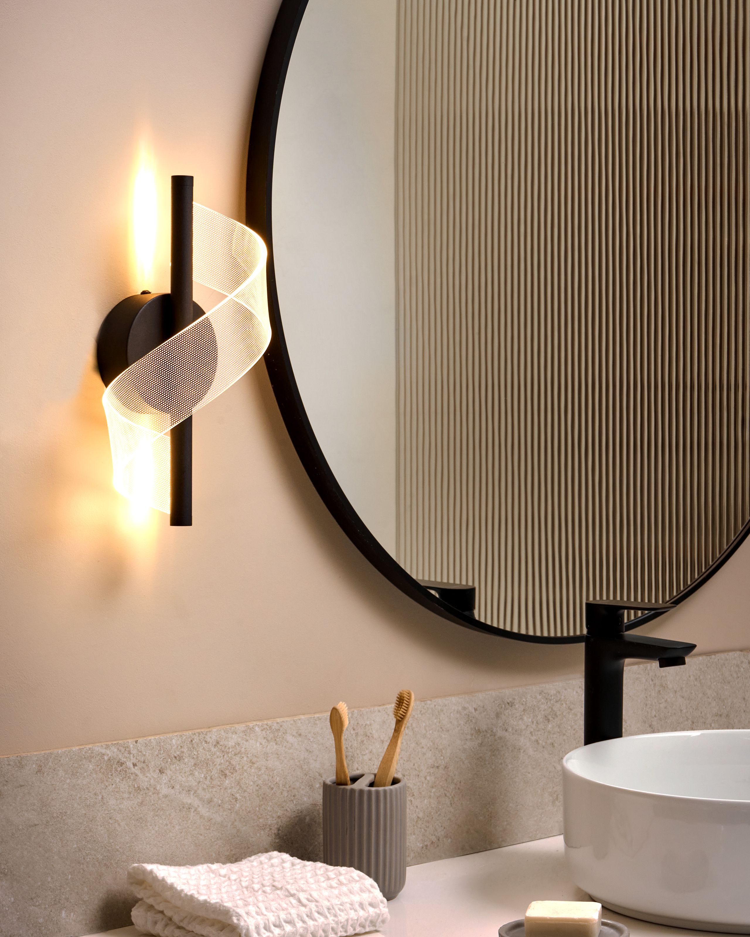Moderni spiraalimainen seinävalaisin. Lisää tilaan ripaus modernia eleganssia tällä tyylikkäällä seinävalaisimella. Kestävästä raudasta valmistetussa valaisimessa on spiraalimainen akryylivarjostin ja lämmin LED-valo, minkä ansiosta se sopii erinomaisesti luomaan kodikkaan tunnelman kylpyhuoneeseen, makuuhuoneeseen tai olohuoneeseen. Se on käytännöllinen mutta koristeellinen valinta, joka kohottaa sisustusta vaivattomasti.