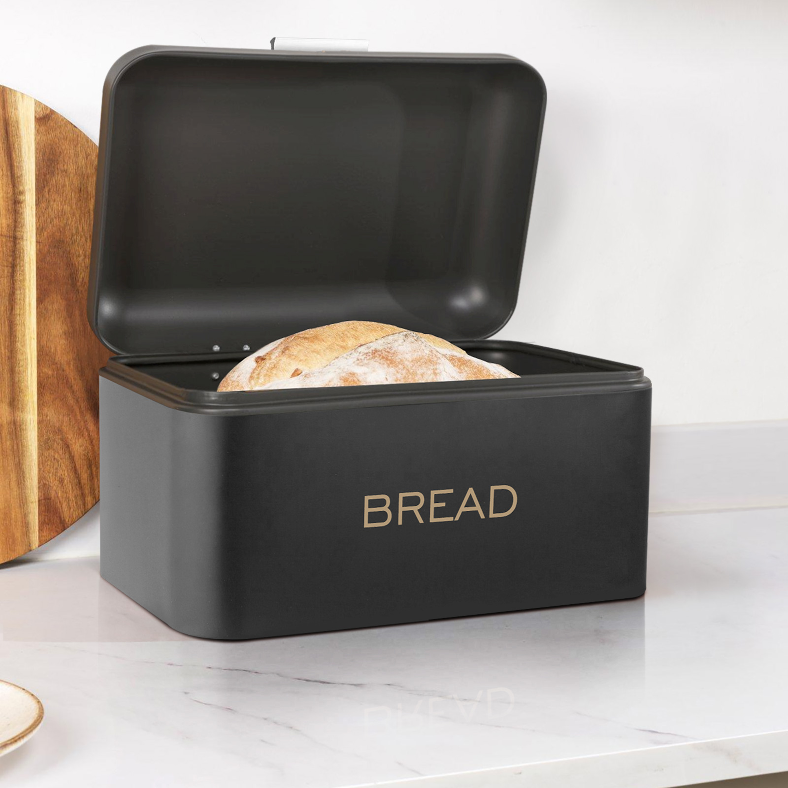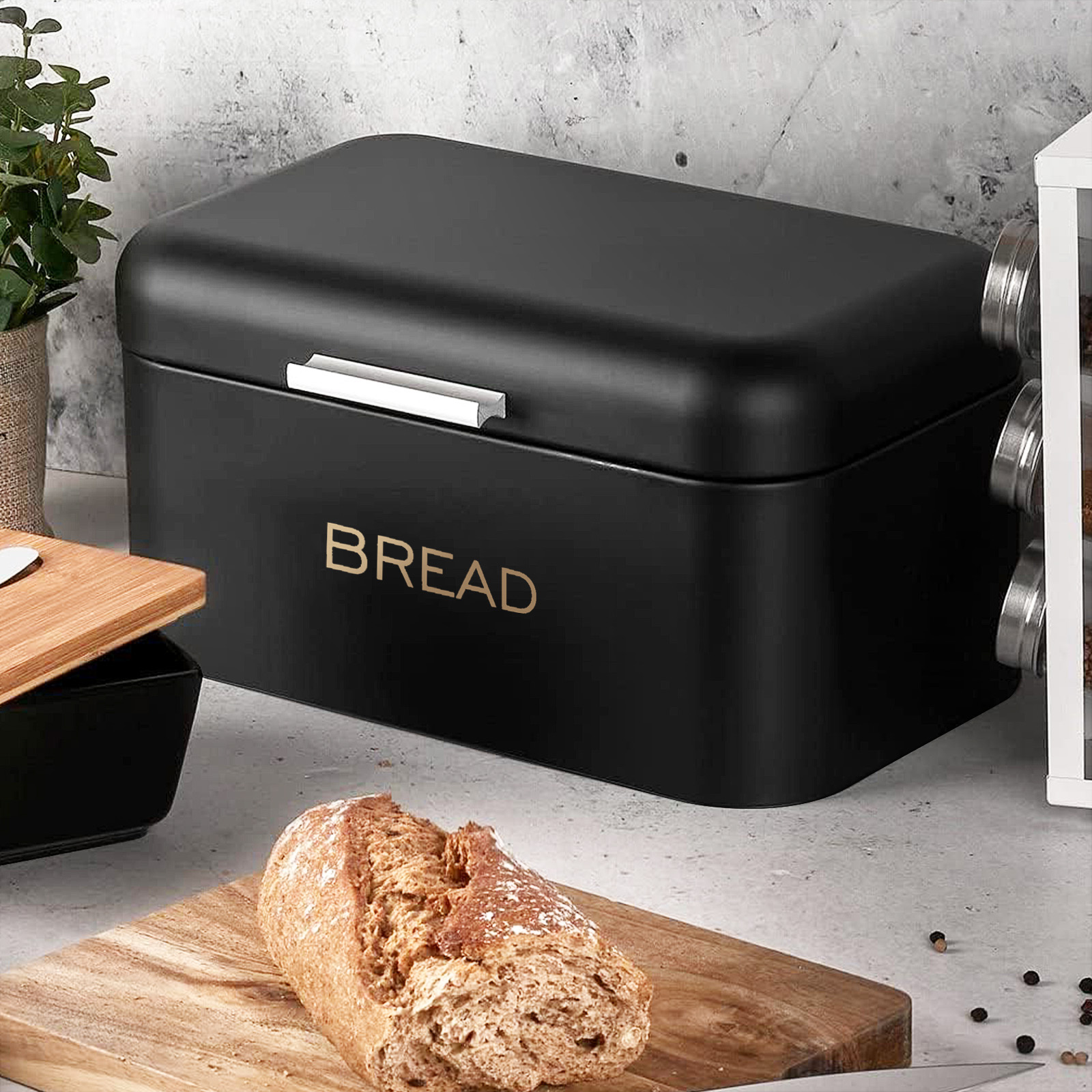 Yhdistä tyylikkyys ja käytännöllisyys tässä mattamustassa metallisessa leipäpurkissa, jonka mitat ovat 34 x 20 x 18 cm. Sen pyöristetty kansi, jossa on harjattu alumiinikahva, pitää leivän ja leivonnaiset kuivina ja tuo keittiöön muotoilijan kosketuksen. Suuri tilavuus ja tukevuus tekevät siitä kestävän lisävarusteen, joka sopii täydellisesti jokapäiväiseen käyttöön.