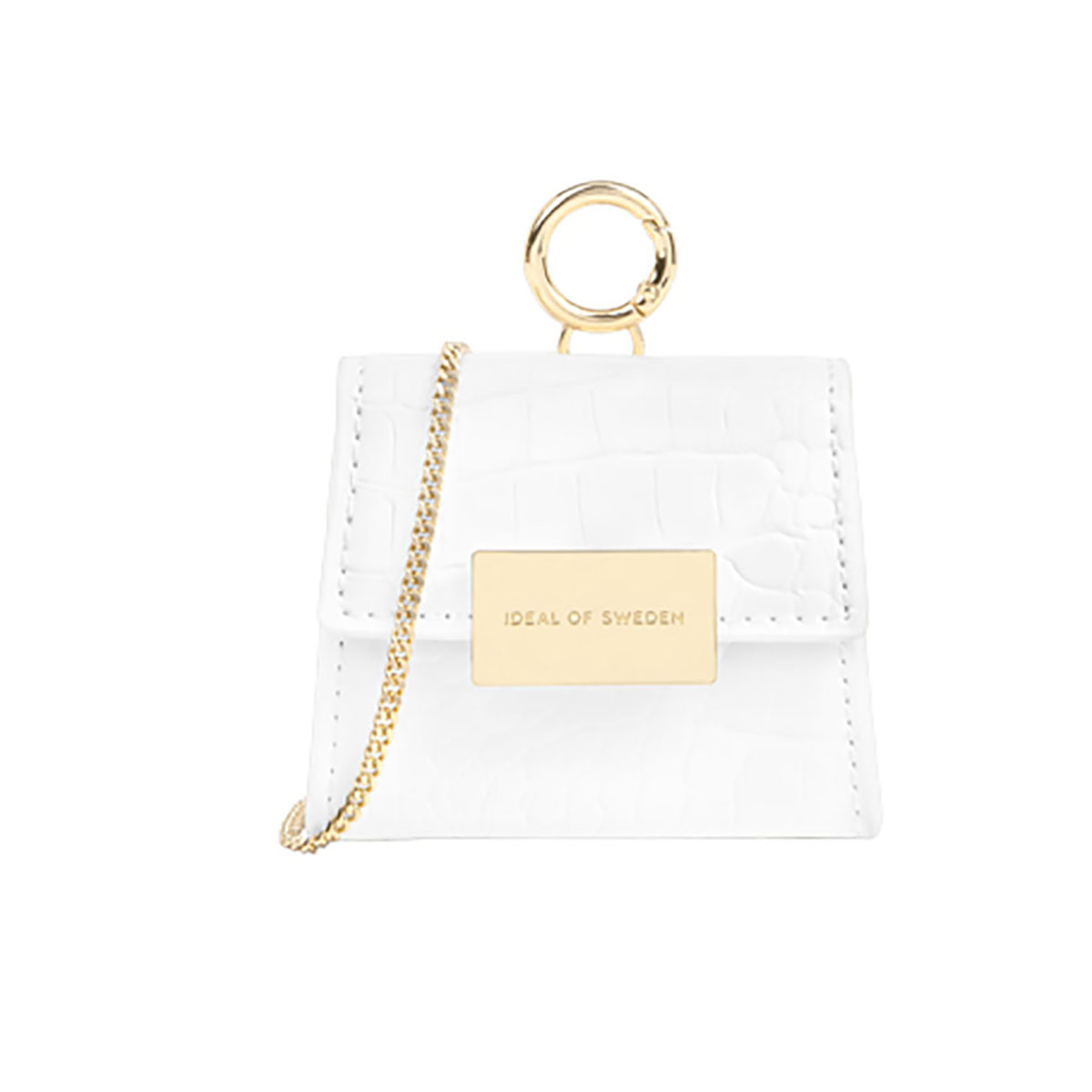 Tämä Ideal of Swedenin Lilou-minilaukku on todellinen muotihelmi, jossa yhdistyvät tyylikkyys ja toiminnallisuus. Siihen mahtuu minkä tahansa sukupolven AirPodit, huulipunasi, avaimesi tai mikä tahansa muu pieni esine. Laukun mukana tulee irrotettava 105 cm:n kultaketju, joten voit käyttää sitä olan yli tai vartalon yli. Siinä on "White Croco" -krokotiilikuvio, joka luo näyttävän kontrastin.