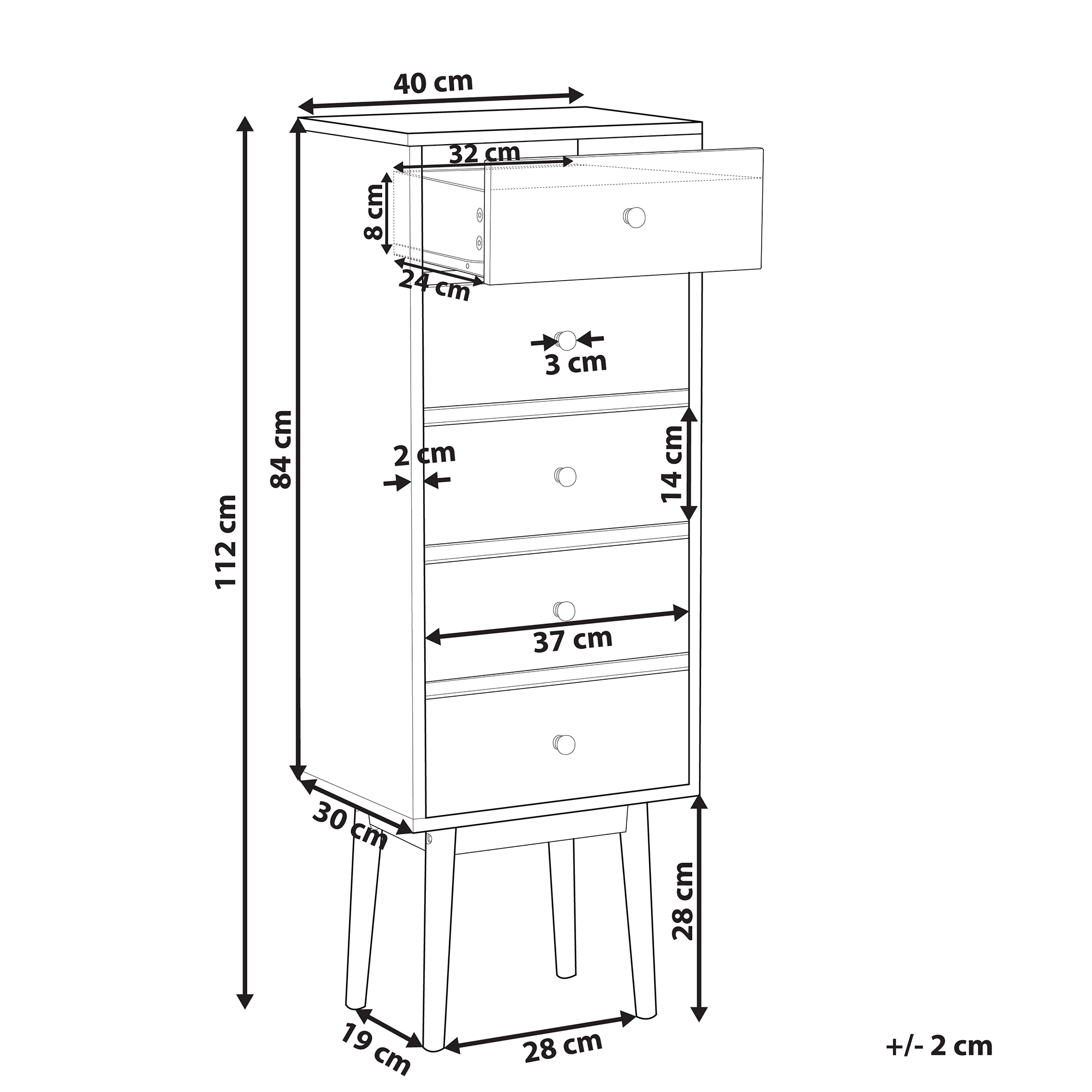 Minimalistinen skandinaavinen lipasto. Käytännöllinen, siro ja korkea lipasto mihin tahansa kodin huoneeseen. Sen tilavat laatikot kätkevät sisälleen kaikki kodin tavarat, kuten toimistotarvikkeet, kirjat tai vaatteet. Vaalea puinen runko ja leikkisät laatikot luovat kauniin yhdistelmän perinteikkyyttä modernilla vivahteella. Sopii kauniisti moderniin tai perinteiseen sisustukseen.