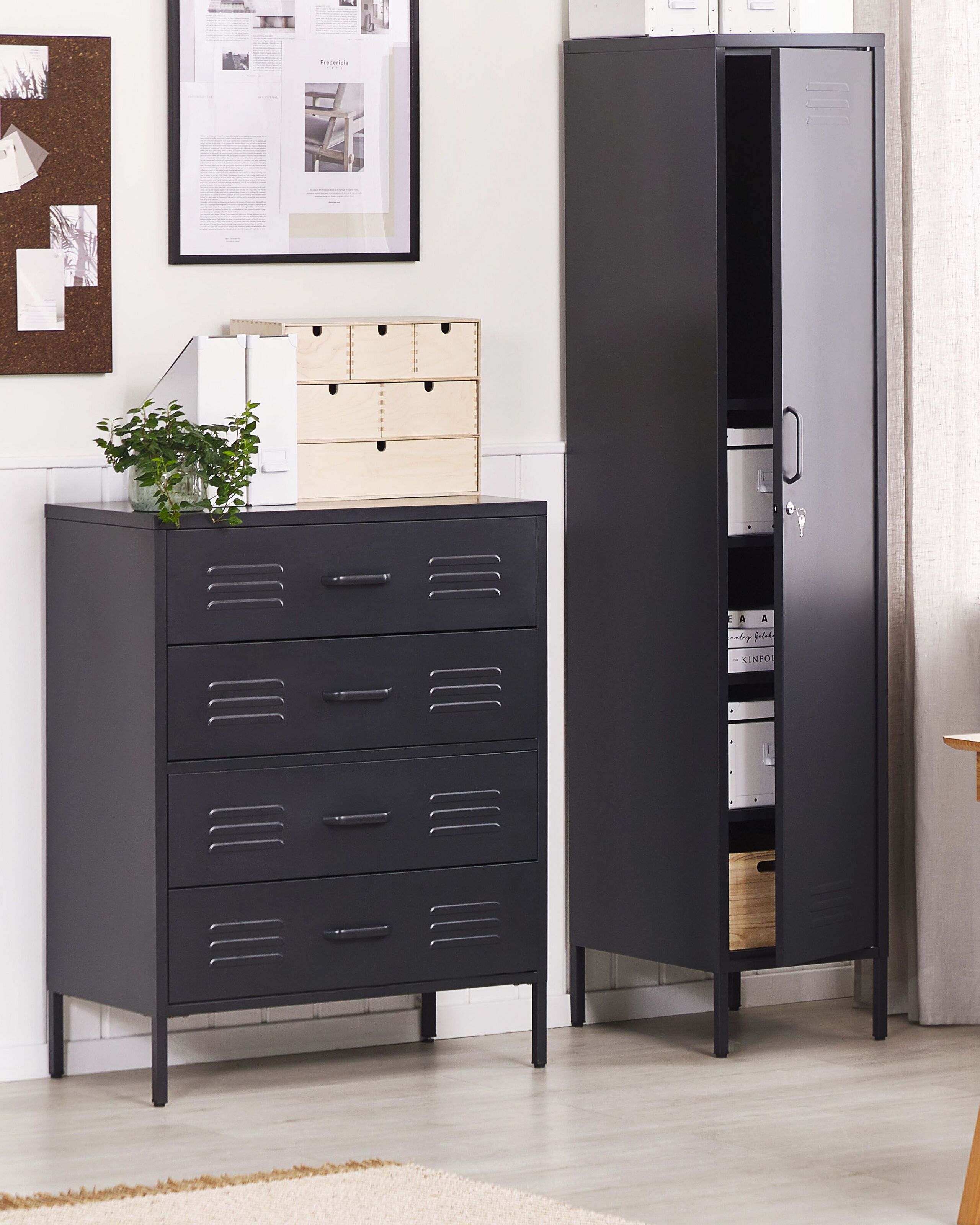 Industriaalinen toimistokaappi. Tämä käytännöllinen, industriaalinen lipasto näyttää hyvältä monissa eri sisustuksissa. Sen runko on valmistettu tukevasta teräksestä, mikä tekee siitä erityisen kestävän. Laadukas pinnoite tekee pinnoista helppohoitoisia ja parantaa lipaston korroosionkestävyyttä. Siinä on neljä tilavaa laatikkoa, jotka tarjoavat tilaa tekstiileille, toimistotarvikkeille ja muille tarpeellisille esineille. Minimalistisen muotoilunsa ansiosta lipasto on upea lisä niin makuuhuoneeseen, olohuoneeseen kuin työhuoneeseenkin.